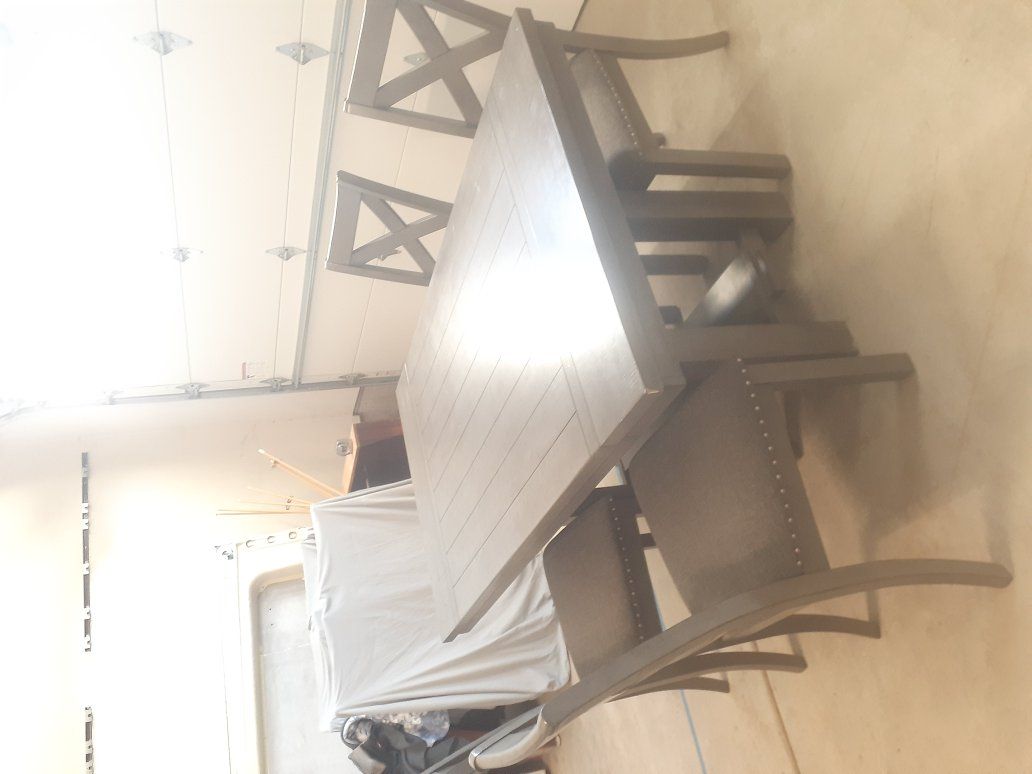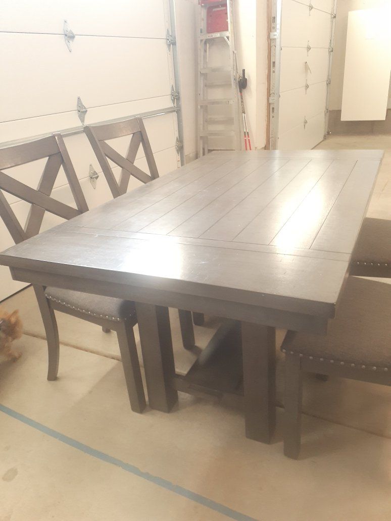 We bought this table in 2023 and used it for 2 years then moved again and didn't need it. The table is 63"x34" with 2 leaves that are 12" each adding another 24". It comes with 8 chairs and is in excellent condition. Would like $1000 or best offer. Make me an offer