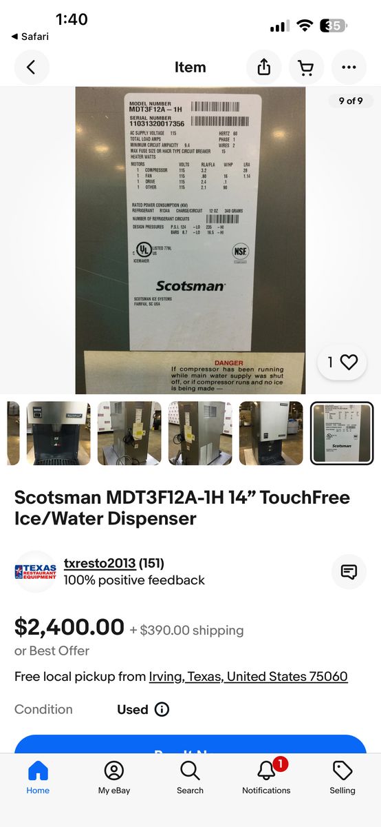 Commercial ice and water dispenser. Used condition. Missing back plate. Works great