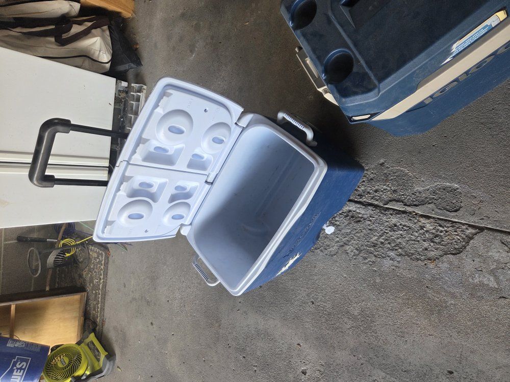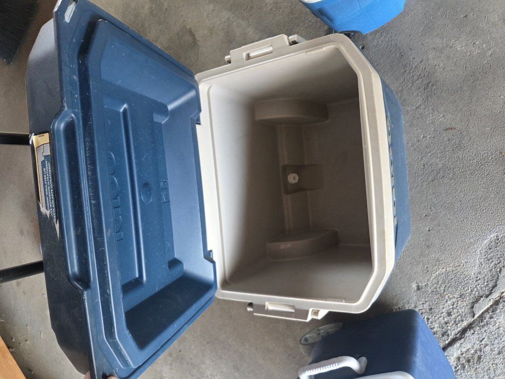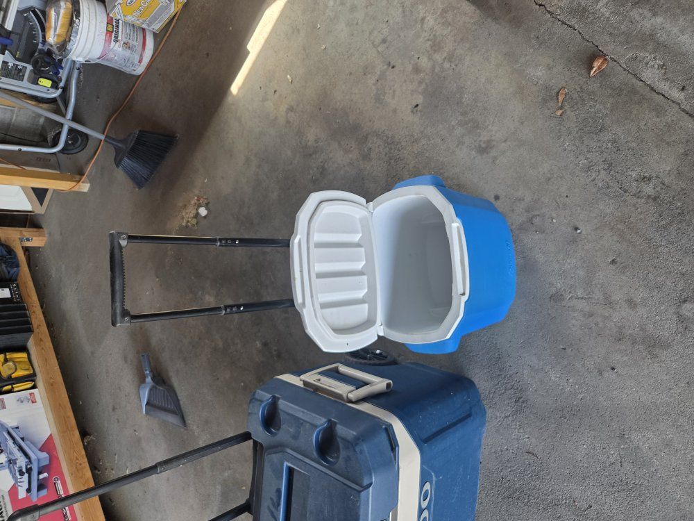 VenmoAll three coolers have retractable handles and wheels. they're a little dusty but in decent shape.
