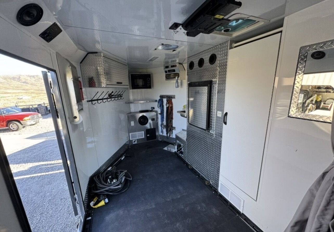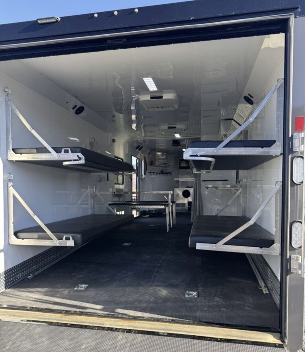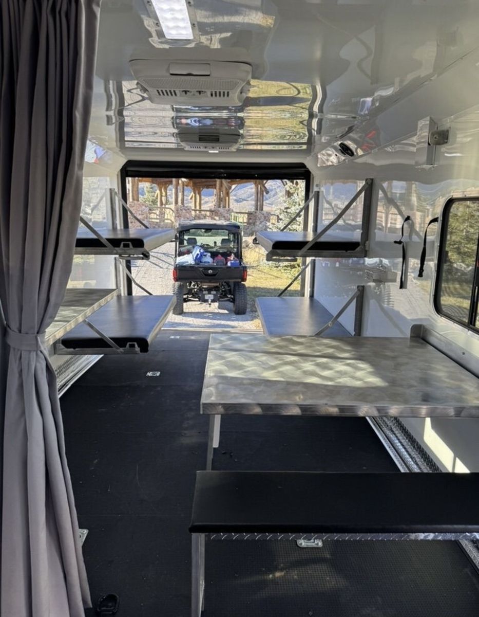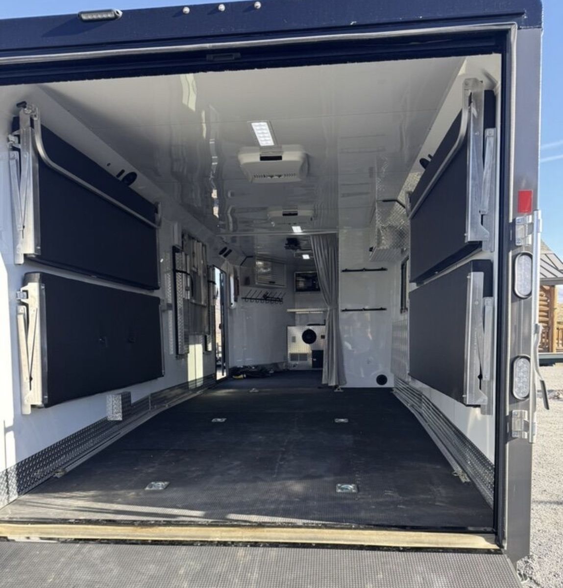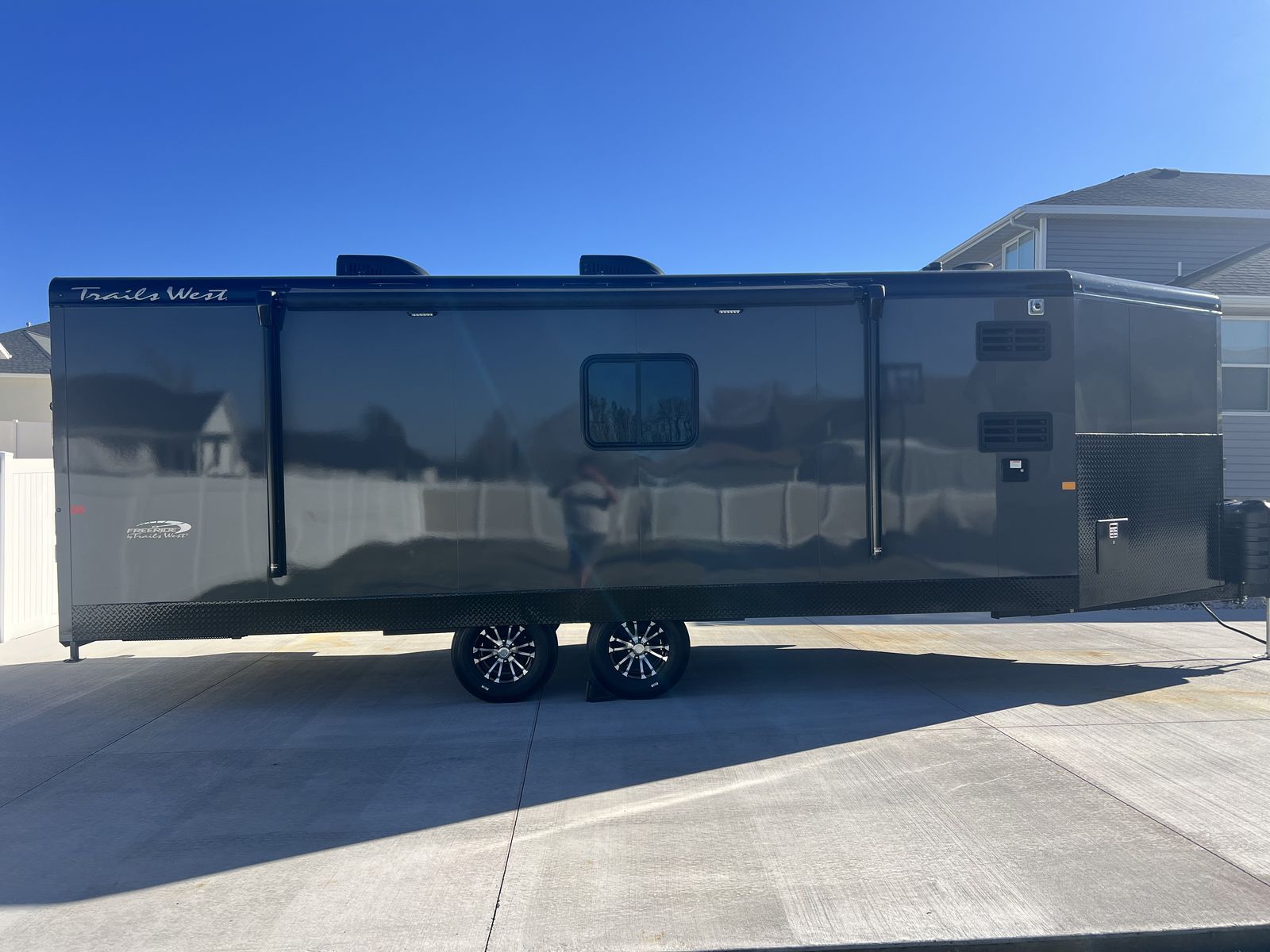 Loaded to the max! Dual AC units, 4 beds, 2 fuel tanks, dual awnings, exterior speakers, lighting, microwave, shower, toilet, fridge with freezer, locking rails on the floor etc. heater etc. works amazing for all sports including sleds. absolutely loaded with every option you can ad on a 28’ bumper pull. Fits my 4 seater pro r just fine. Title in hand.