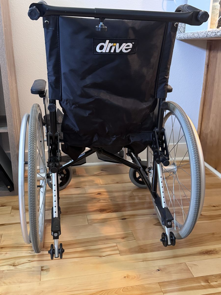VenmoDrive Medical Cougar ultra lightweight rehab wheelchair for sale in excellent condition. This has elevating leg rests, quick-release rear wheels, and a folding back for easier transport and storage. It is much lighter and easier to handle than a standard wheelchair, while still being sturdy and adjustable. Located near downtown Boise.