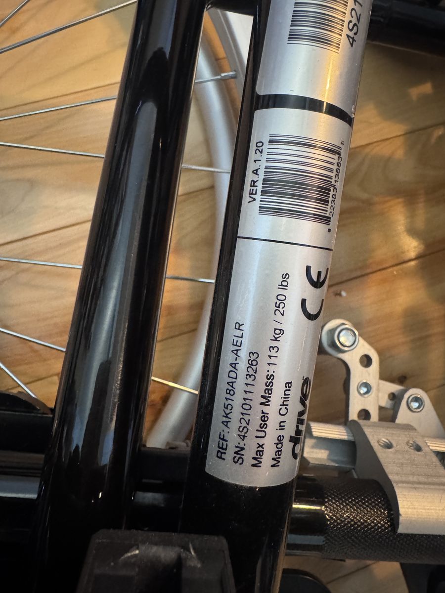 Features: 18" seat Elevating leg rests Ultra lightweight aluminum frame Quick-release rear wheels Folding back 250 lb weight capacity Clean and in excellent condition