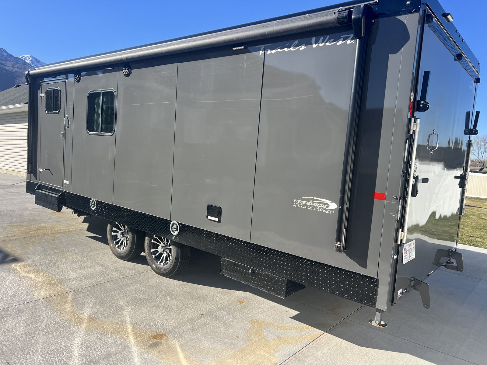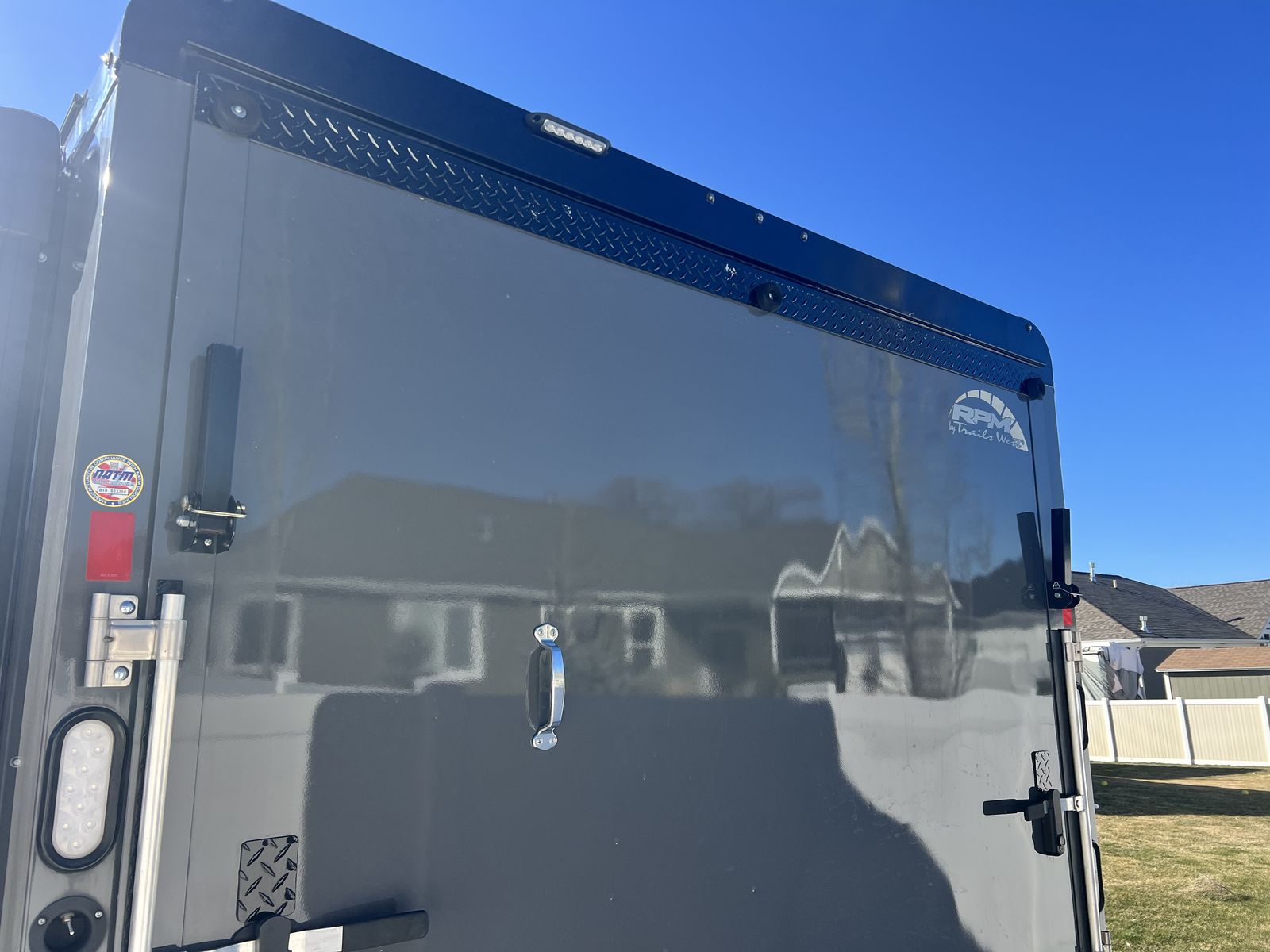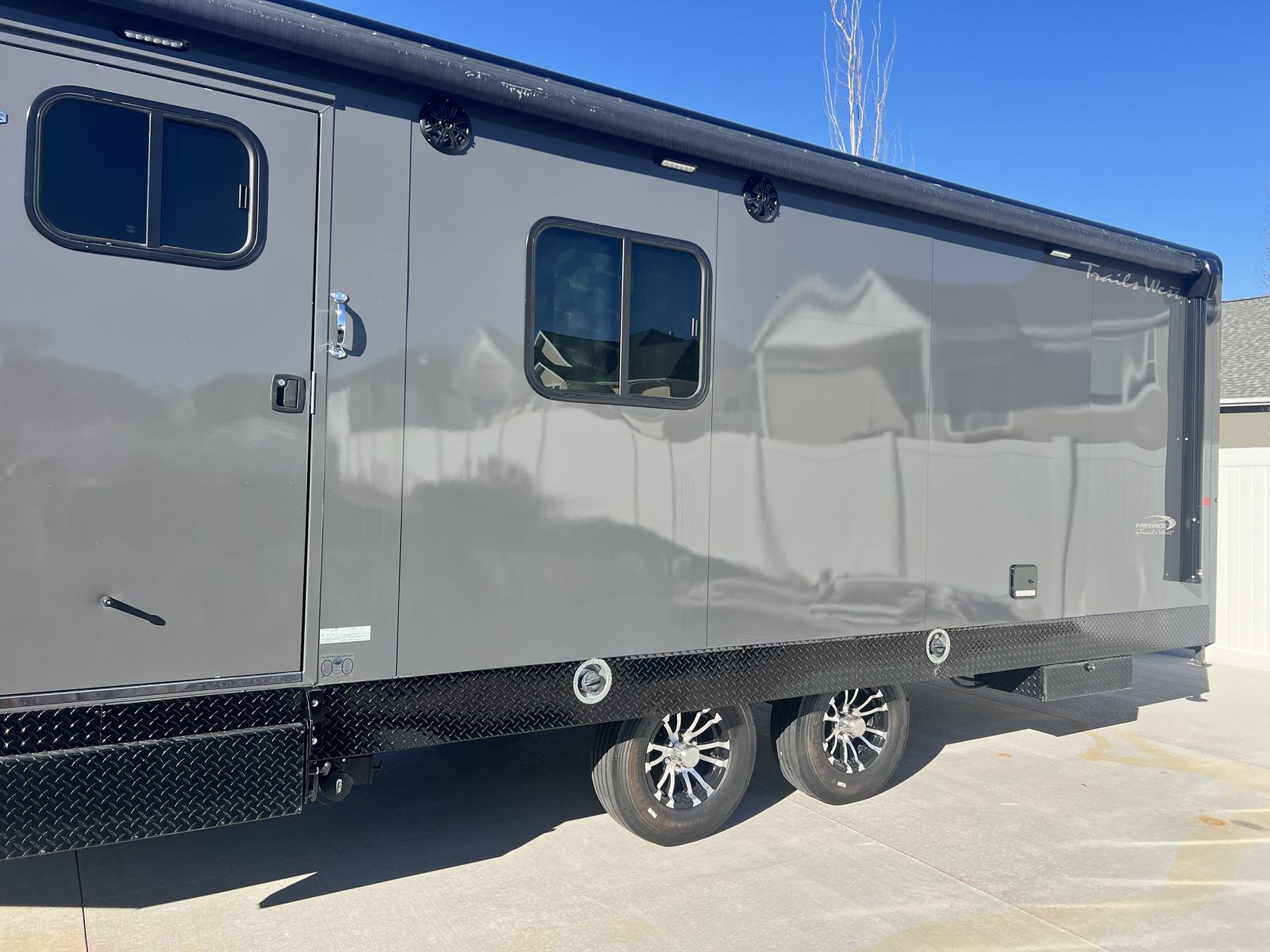 Loaded to the max! Dual AC units, 4 beds, 2 fuel tanks, dual awnings, exterior speakers, lighting, microwave, shower, toilet, fridge with freezer, locking rails on the floor etc. heater etc. works amazing for all sports including sleds. absolutely loaded with every option you can ad on a 28’ bumper pull. Fits my 4 seater pro r just fine. Title in hand.