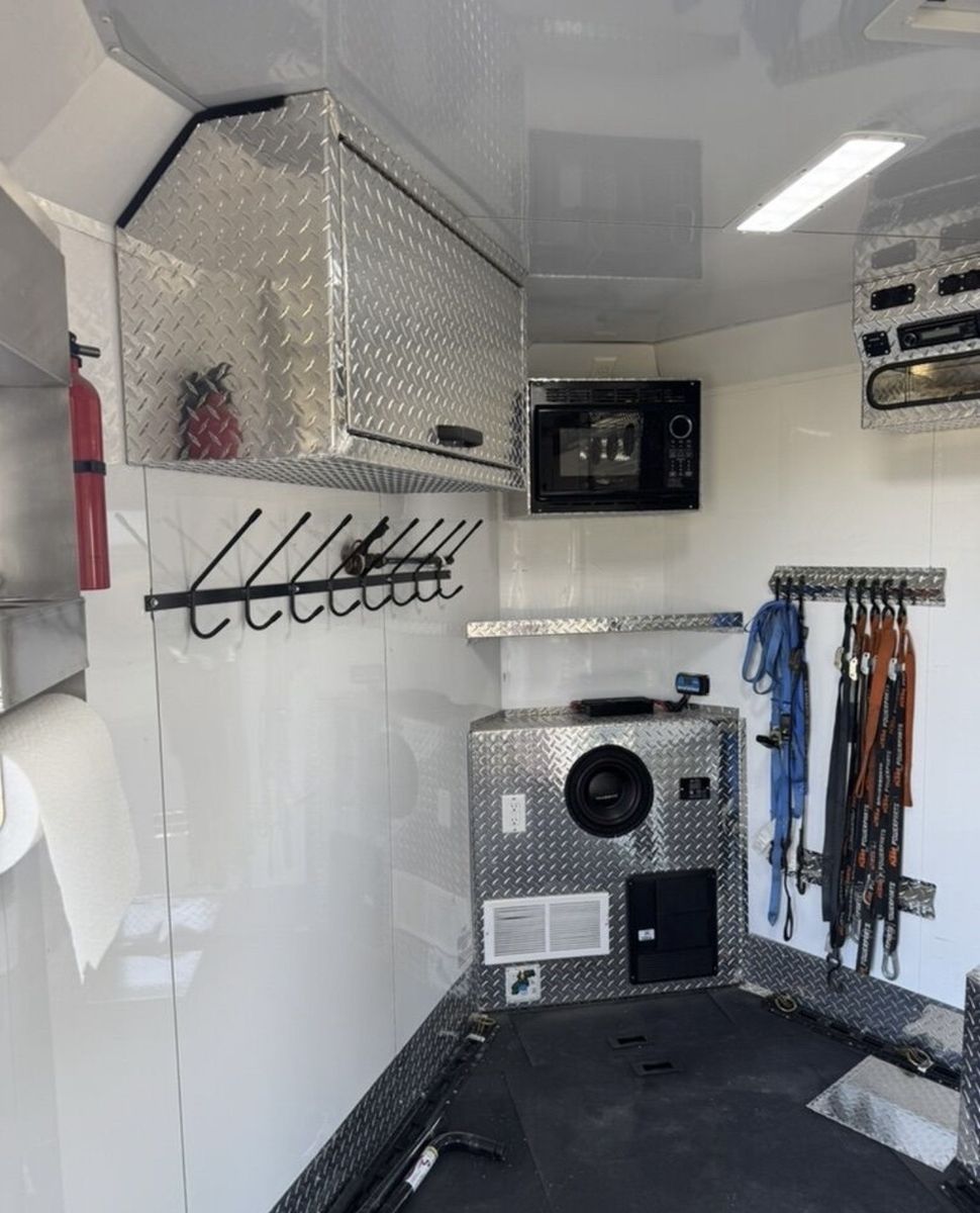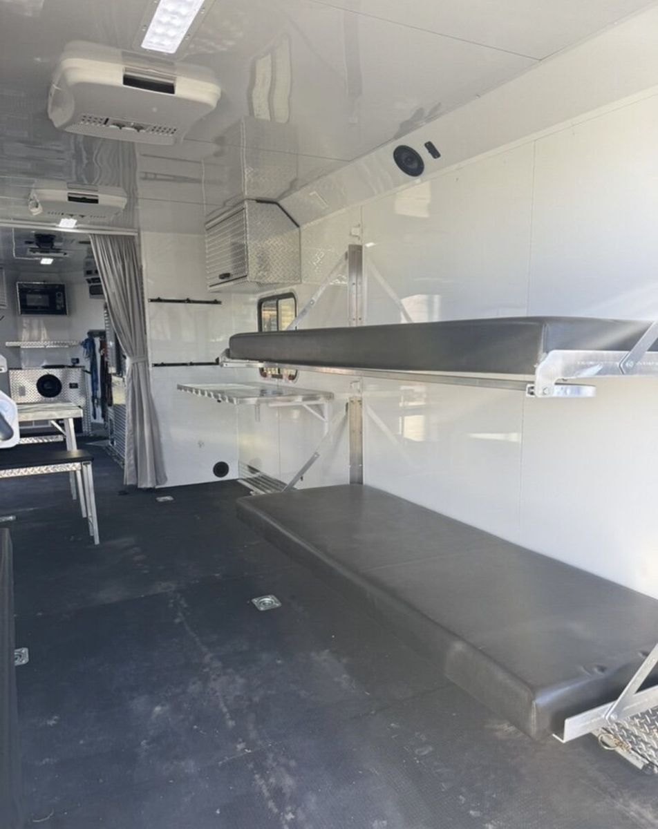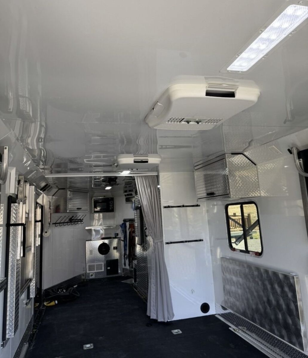 Loaded to the max! Dual AC units, 4 beds, 2 fuel tanks, dual awnings, exterior speakers, lighting, microwave, shower, toilet, fridge with freezer, locking rails on the floor etc. heater etc. works amazing for all sports including sleds. absolutely loaded with every option you can ad on a 28’ bumper pull. Fits my 4 seater pro r just fine. Title in hand.