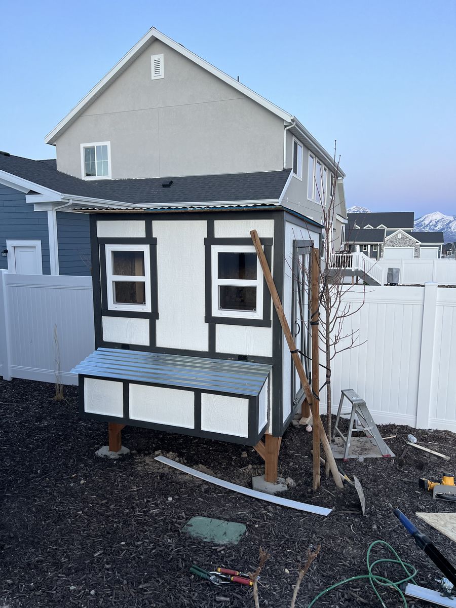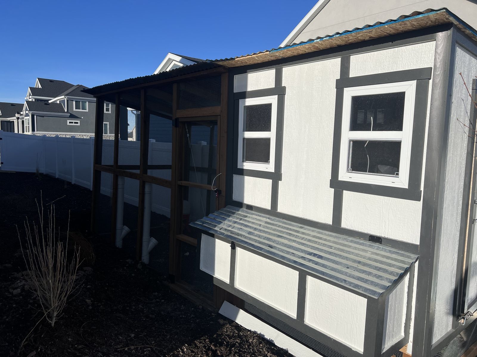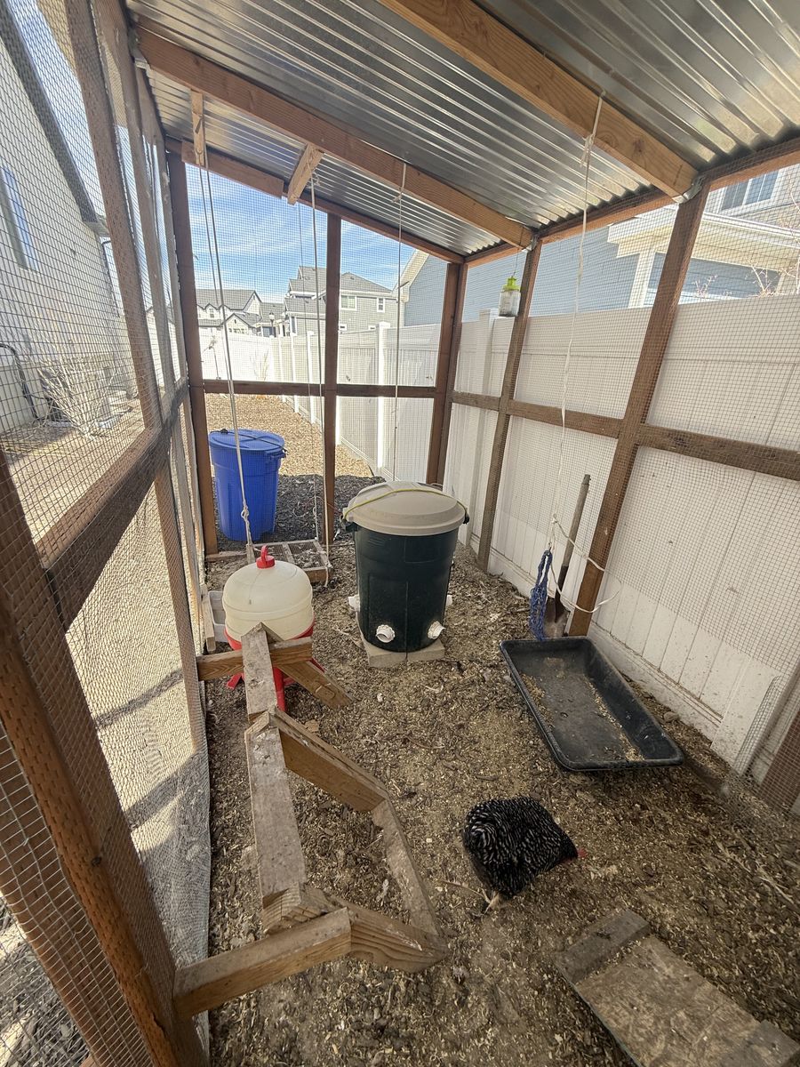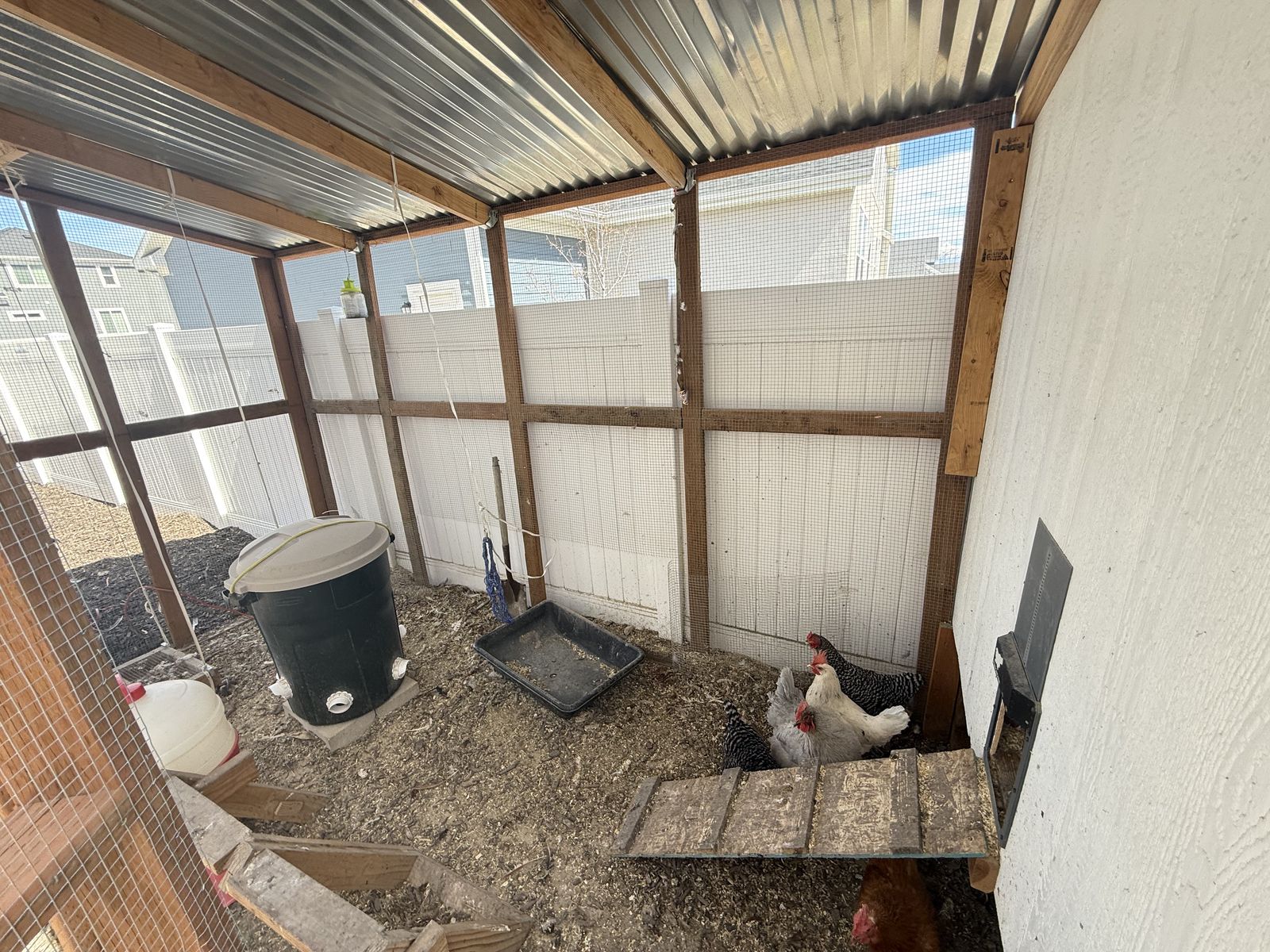 ApplePayI have a 7’ H. X 6’ W. X 7’ long chicken coop with 4 nesting boxes, roosting bars, automatic chicken door, air vents and 2 windows in coop. Run in 14’ L x 8’ tall and 8’ w. With metal roof. Comes with pvc feeders, 20 gallon water feeder, 7 gallon heated water tank, 50 gallon food feeder, and much more. 13 chickens come with coop and run all 1 1/2 old and great layers and great with kids and dogs. I usually average 10-13 eggs a day.
