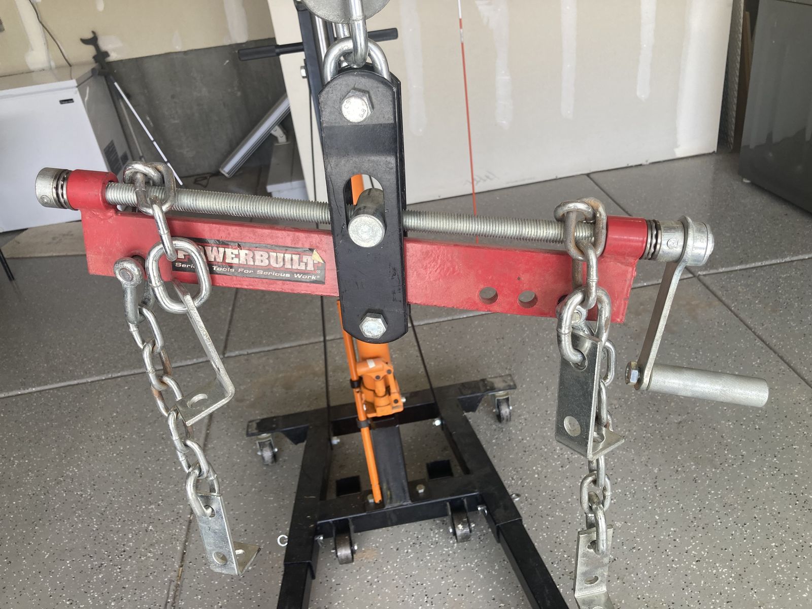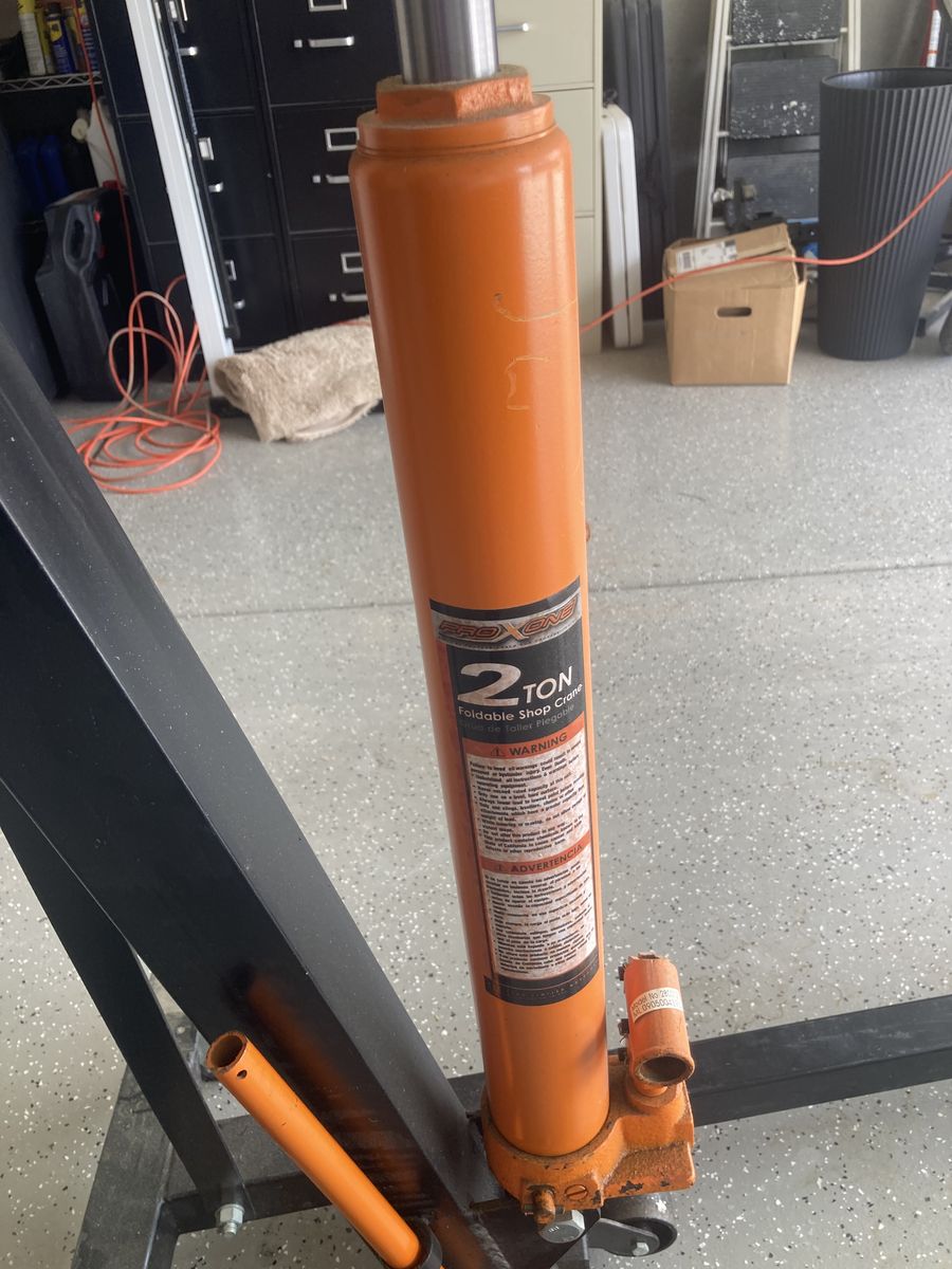 2 ton Engine hoist, stand, load leveler. Adjustable arm for lighter or heavier loads.