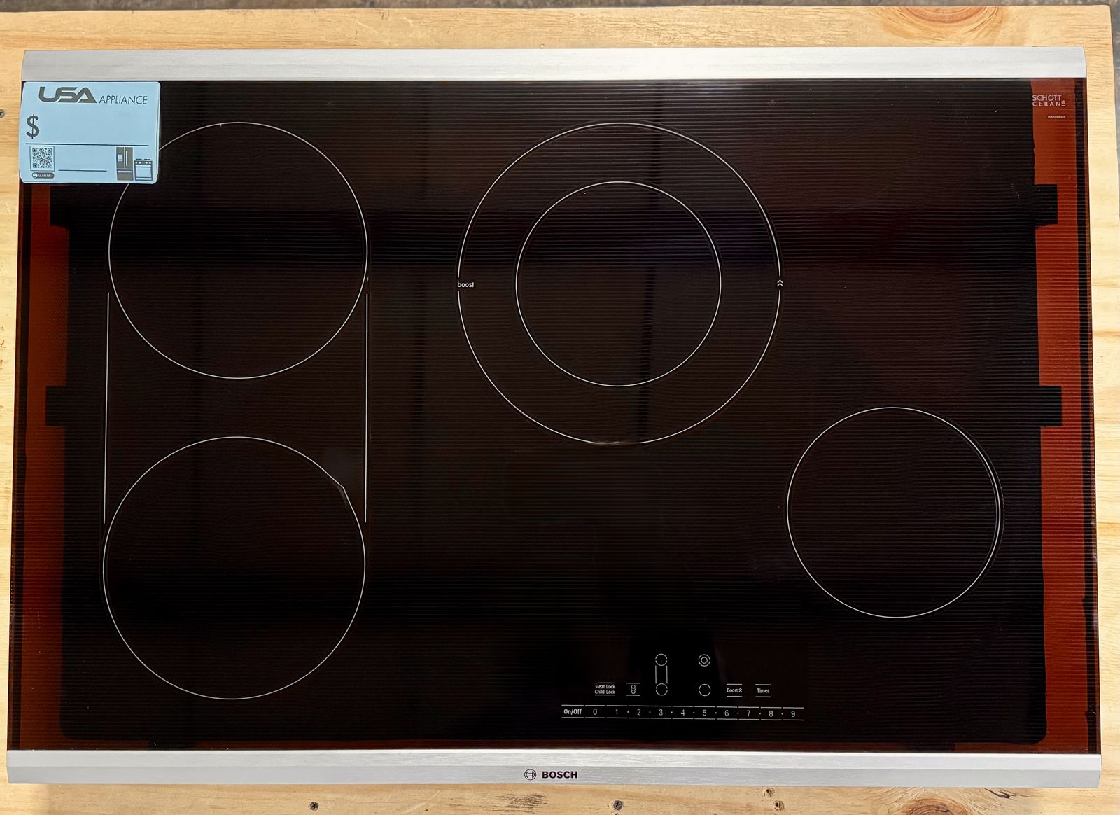 Bosch 800 Series 30 Inch Electric Cooktop with 4 Elements, Ceramic Glass Surface, Bridge Element, Dual Elements, SpeedBoost®, and Automatic Shut-Off: Stainless Steel Frame