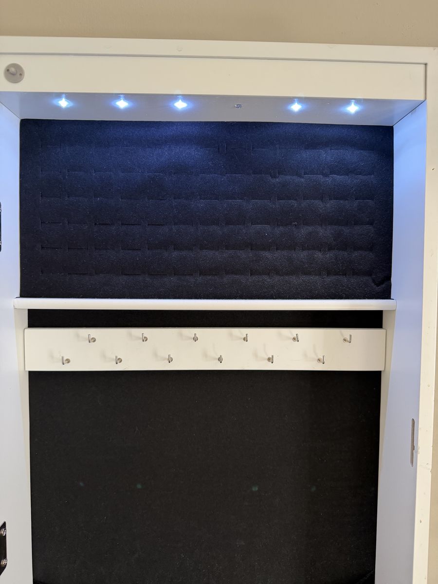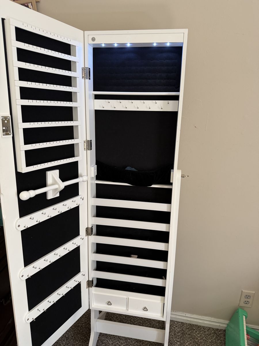 ZelleGood to store earrings, chains, bracelets, and rings! Doesn’t lock Led lights