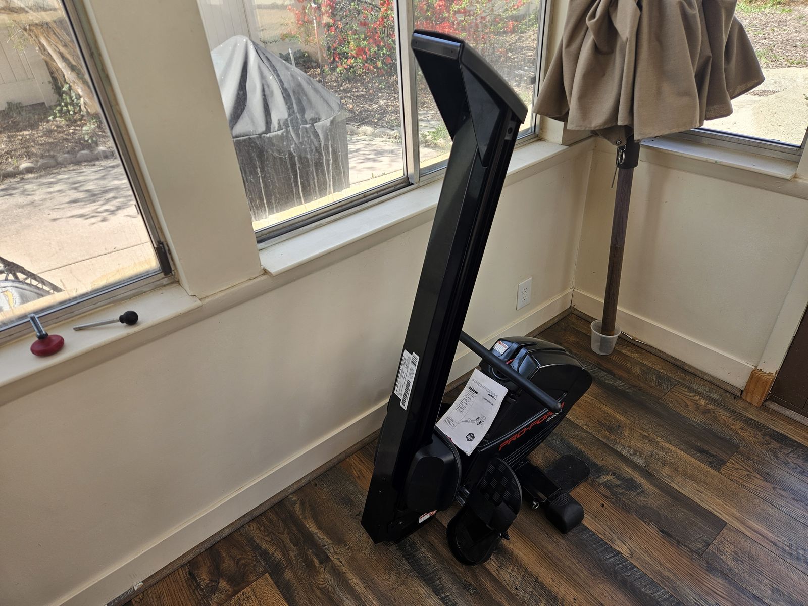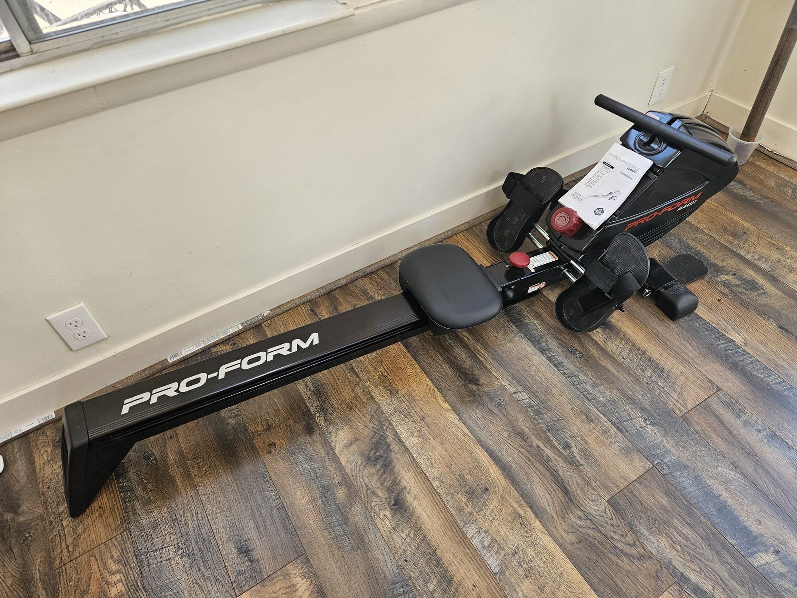 VenmoBasic folding rowing machine. We enjoyed it so much that we upgraded. Great way to try this for cheap. Folds up nicely for smaller spaces.