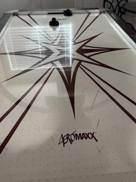 Aeromaxx air hockey table for sale. Used but in good condition. Comes with paddles and pucks. Air flow is good and the puck glides great! No delivery, you pick up.