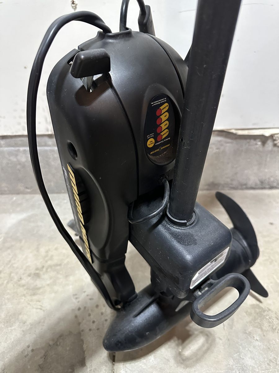 2004 Minn Kota Bow Mount Trolling Motor with 12 Volt Marine Battery. The battery is 4 years old but still has some juice. Motor comes with foot pedal and is 48# thrust. It came off a 2004 Tracker V16 fishing boat that I sold so I don't need anymore.