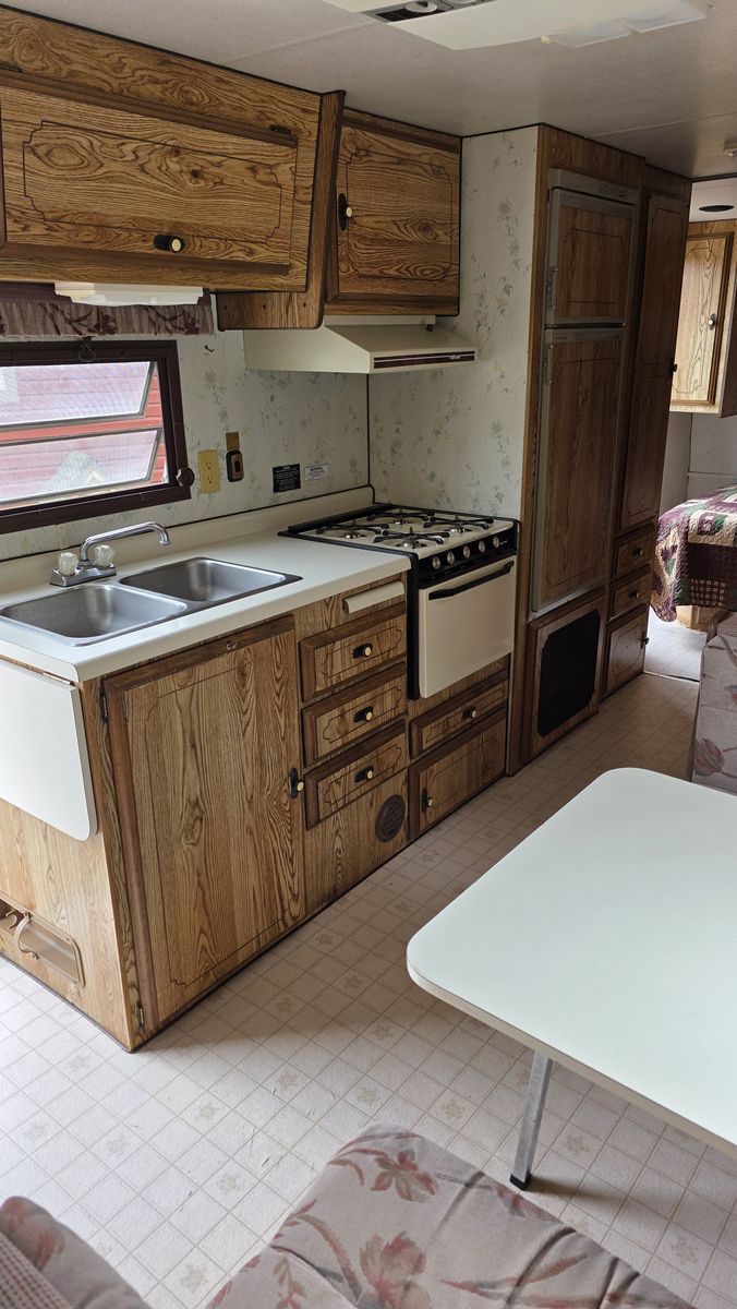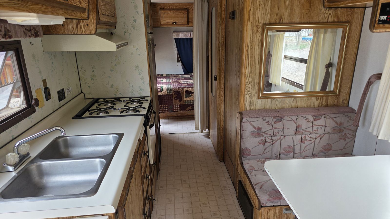 Everything works. Fridge, AC, furnace, stove, water heater, and toilet. Sleeps 6. Older camper with lots of life left.
