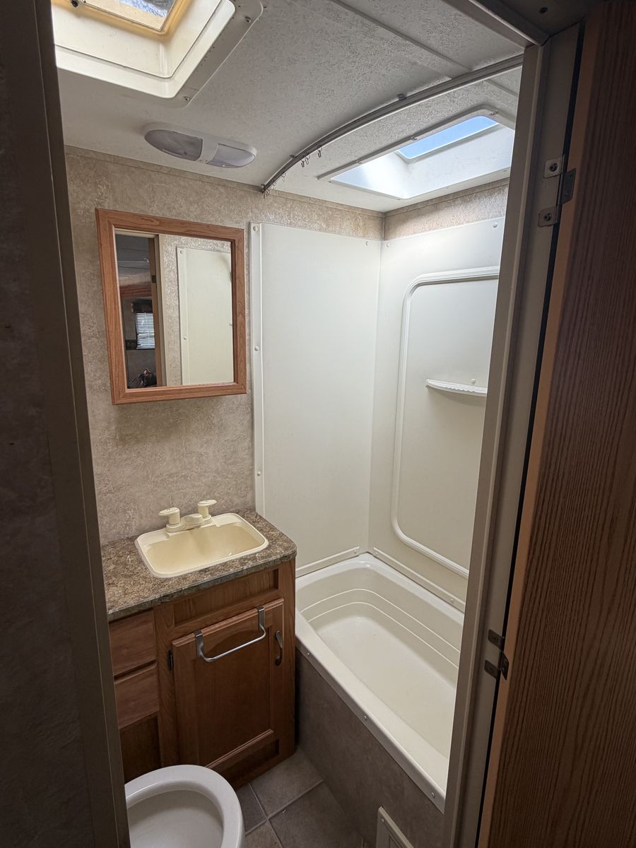 This has been a great camper for us but we don’t use it as much as we thought we would. Great for bigger families. It has bunk beds, fold out couch and dinette bed, full bathroom and lots of storage. It has an off road package which gives a little more clearance for driving certain places. Just had the roof redone in February. 29 ft long If you have any questions feel free to reach out. 2 generators included.