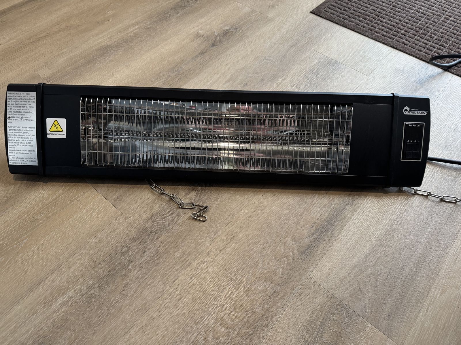 VenmoDR. INFRARED HEATER Portable Infrared Indoor and Outdoor Space Heater for Patio, Garage, Commercial & Residential. We bought it a little more than a year ago from Amazon for use in our greenhouse. It works great, we have since moved and no longer have a greenhouse.