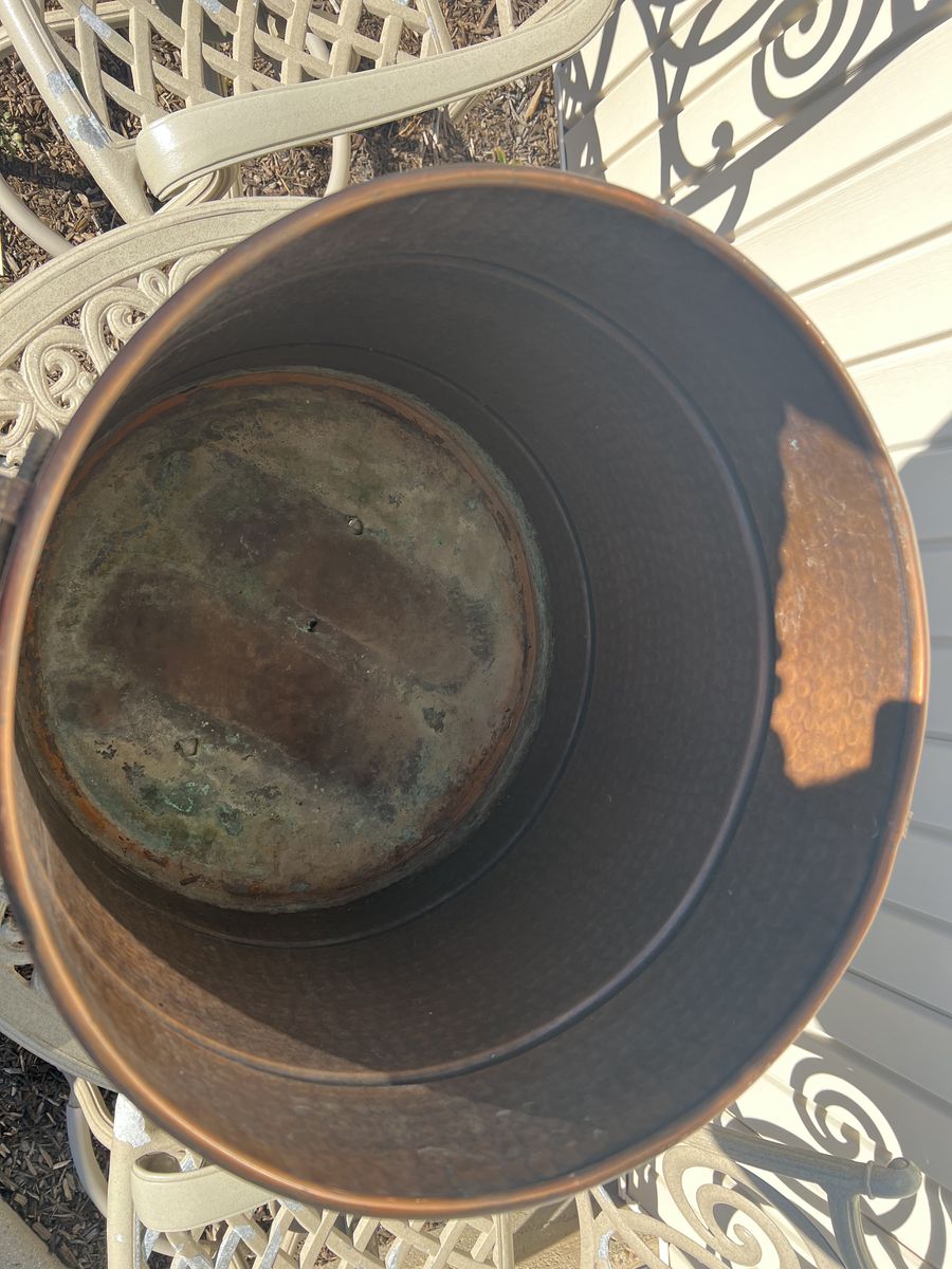 VenmoI have this Copper/Bronze planter for sale, it is used and has 3 holes in the bottom for drainage. It measures 17” in diameter and 16” tall. asking $18.00