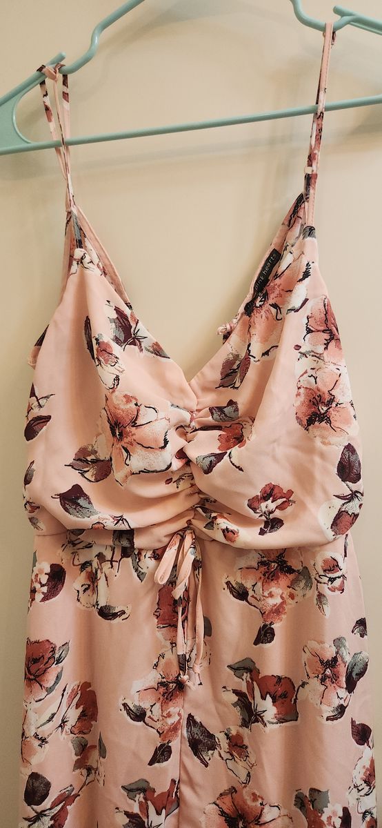 VenmoLong, flowy, Pink Floral Spaghetti Strap Dress. Adjustable straps and attachable slip. Life wait. Smoke-free home