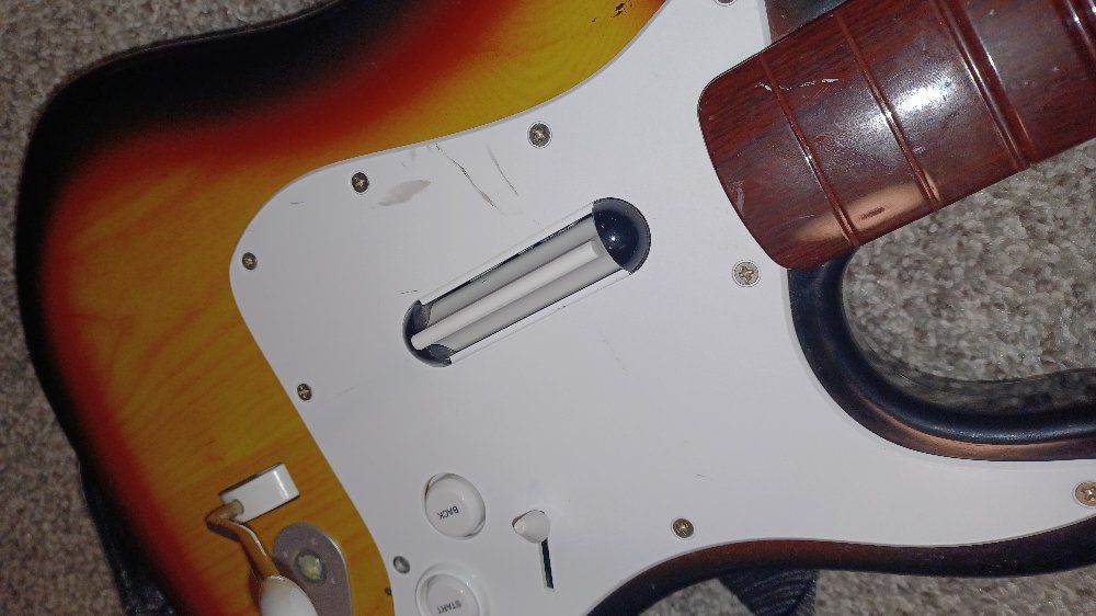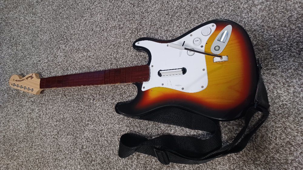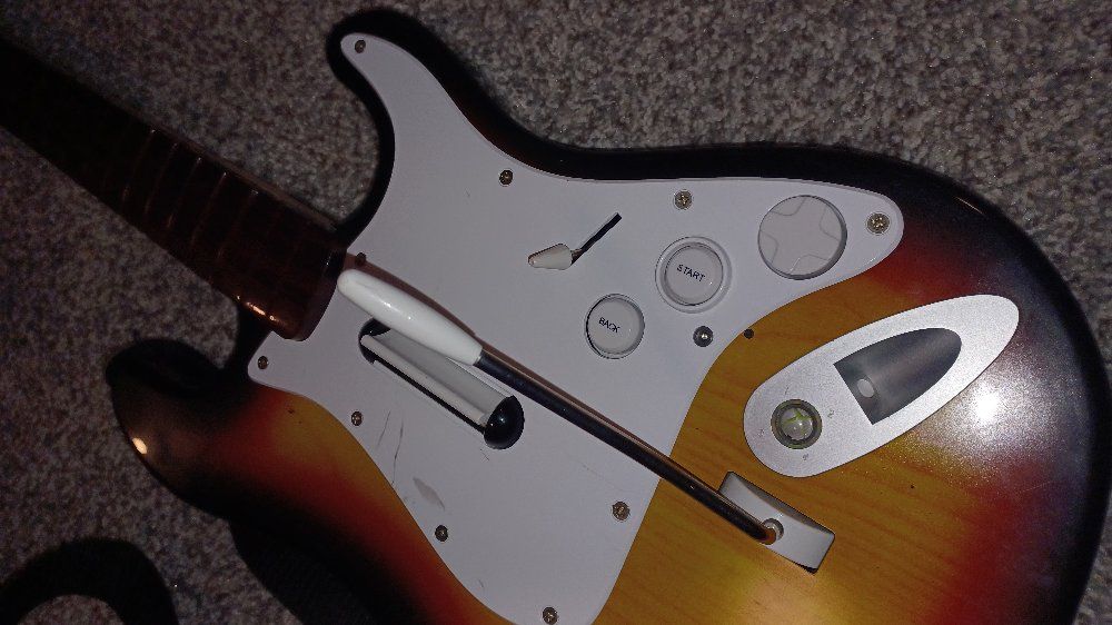 PayPalRockband Guitar Controller for Xbox 360. Wireless. Fair condition. Some marks and scratches. Works nicely. Recently tested well to Xbox. All buttons, strum bar, whammy bar, and dpad work.