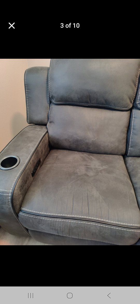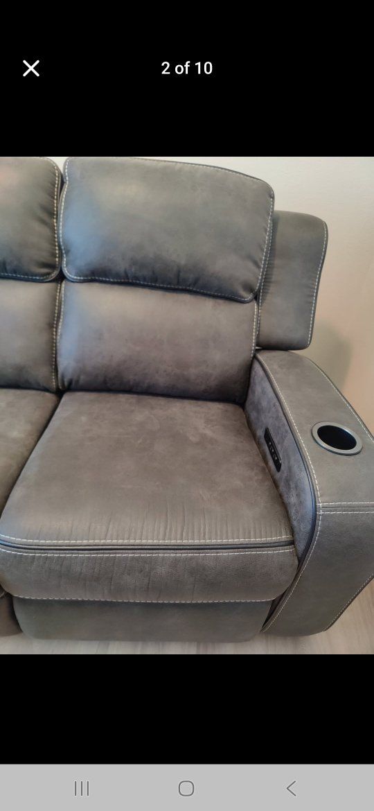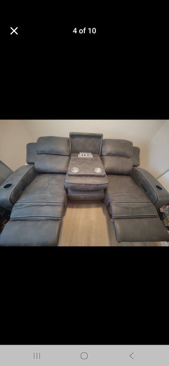 VenmoSelling my barely used Matteus Motorized reclining sofa! In very good condition all around, sparsely used. minor tear on one end as seen in photo. No stains. Very comfortable and all motors work flawlessly. Has separate controls for the reclining feature as well as motorized headrests on both sides. Center portion drops down to reveal a table with extra cupholders, power outlets and USB ports. Backrests are removable for easier moving. Requires 2 power outlets for full functionality. Stats: Dimensions: 88.2”L x 40.1”W x 42.1”H Weight: 290.3 lbs. Inside seating width (armrest to armrest) is 70.9” Seat cushions are 21.7” deep and 20.7” high off the ground Armrests are 8.7” wide and 25.2” high off the ground Seat back height is 23.6“ Fully reclined length is 64.5“ Approximately 3” of wall space is needed to fully recline Link to additional information: https://www.costco.com/p/-/matteus-fabric-power-reclining-sofa-with-drop-down-table/100785085