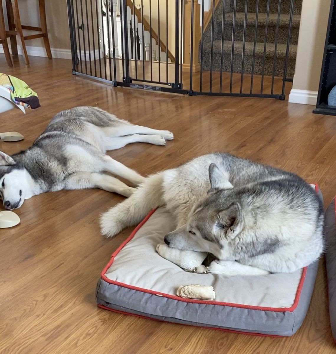 We have to re-home them because we got goats and chickens and it’s been difficult to keep them from trying to eat them.