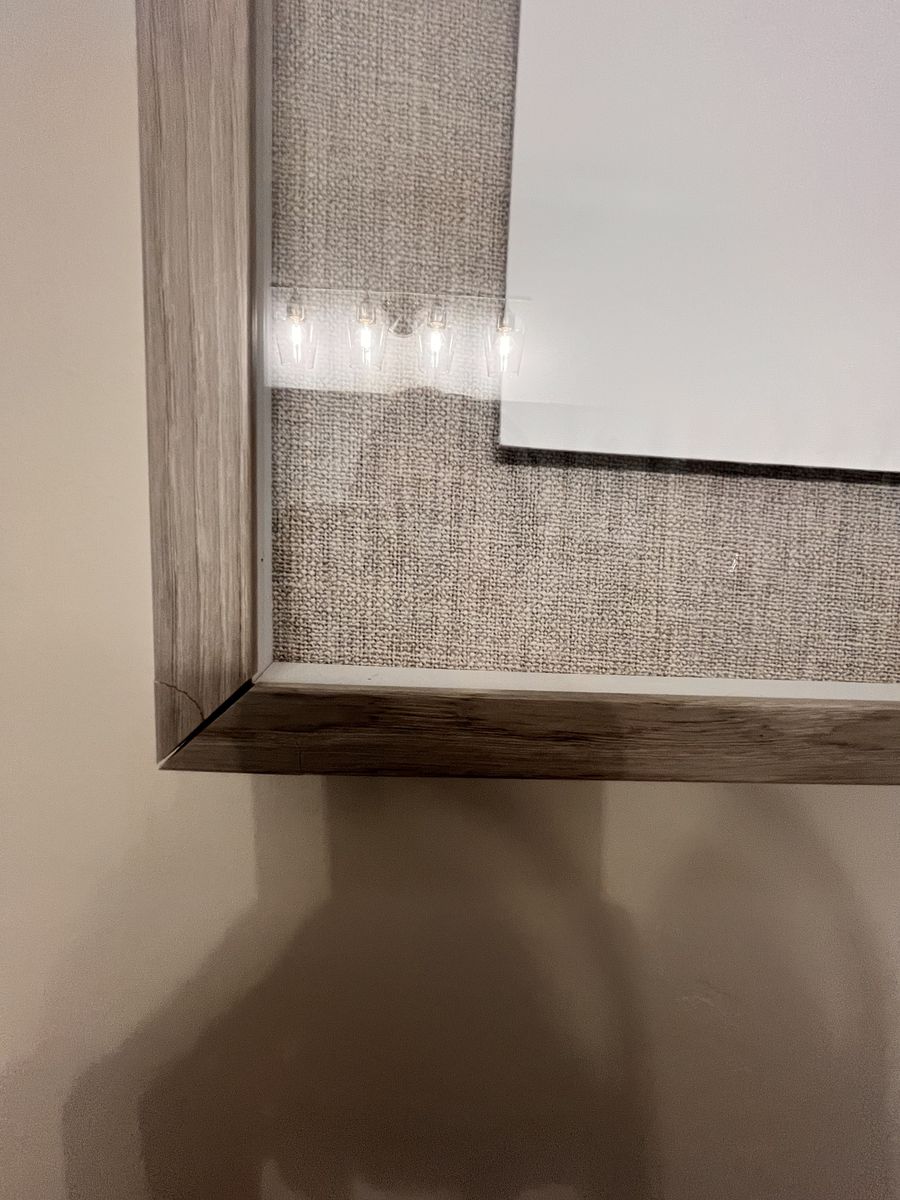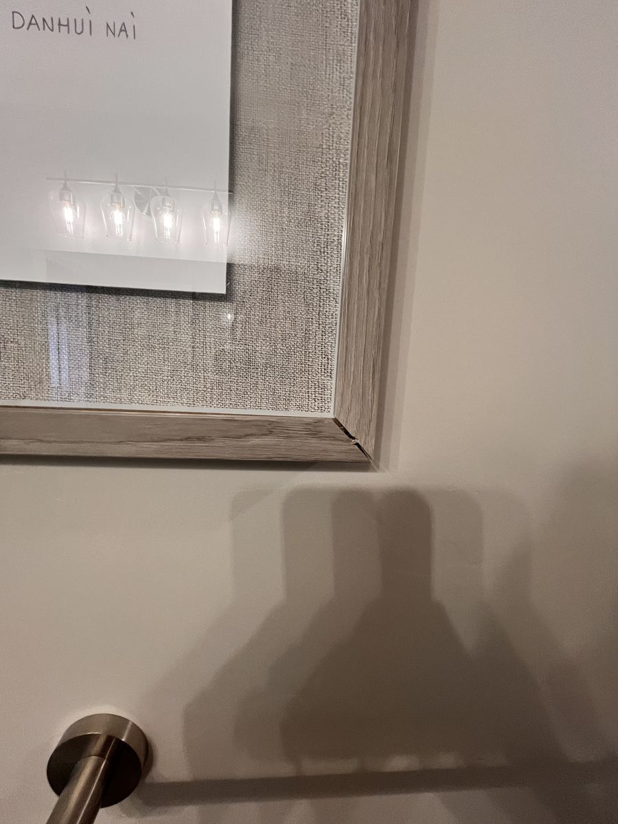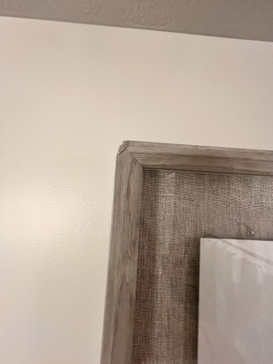 ApplePay2 framed wall art with slight damage to one side upper and lower.