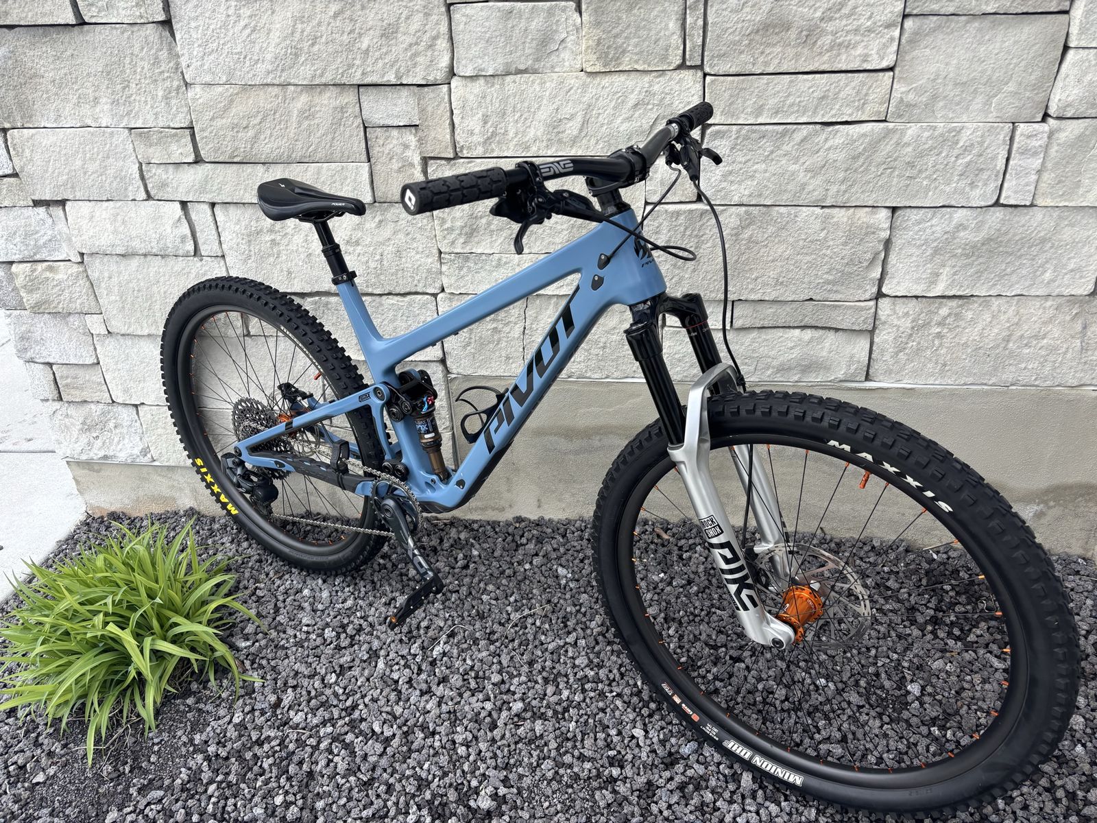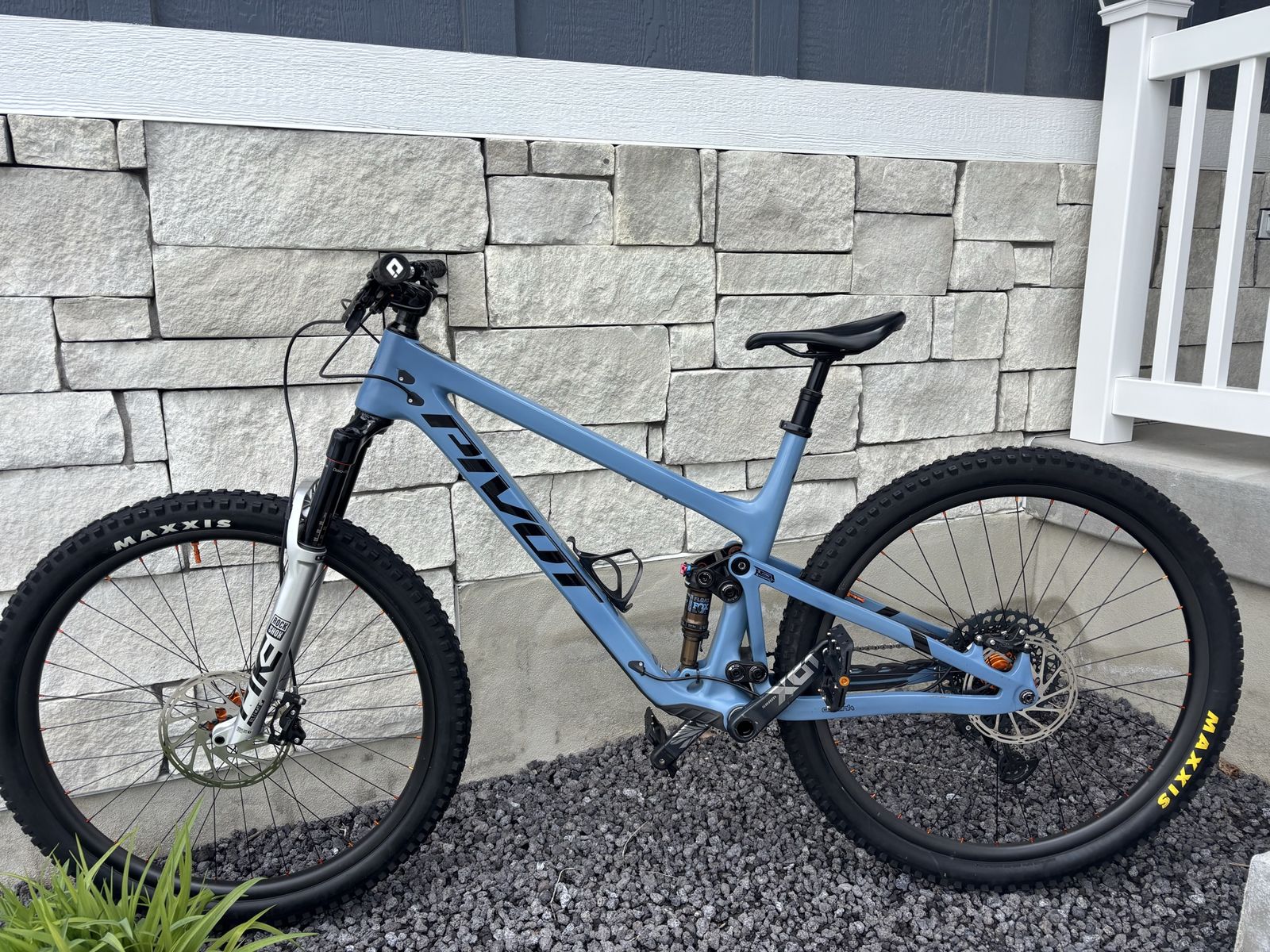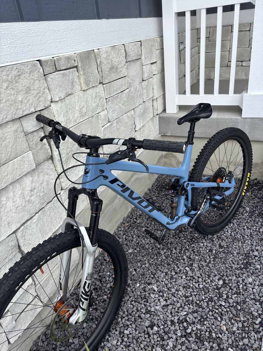 VenmoCustom build RockShox Pike 130mm front suspension. Perfect for this light weight bike Rear Shock Fox DPS Wheels: 19 Hydra laced up to Light Bicycle carbon dioxide hoops. Light and fast Brakes: Sram G2. Brake Sram GX Axis shifter and Derailer. 1x12 electric shift Sram XO1 Eagle Cassette. Cranks: Sram XO1 Cabon 175. With covers Cockpit: Enve M6 bar and 50MM stem Dropper: One Up 210mm with a Fox lever XL fits me great at 6’1” Frame protection This has been the funnest and easiest bike to ride I’ve ever been on