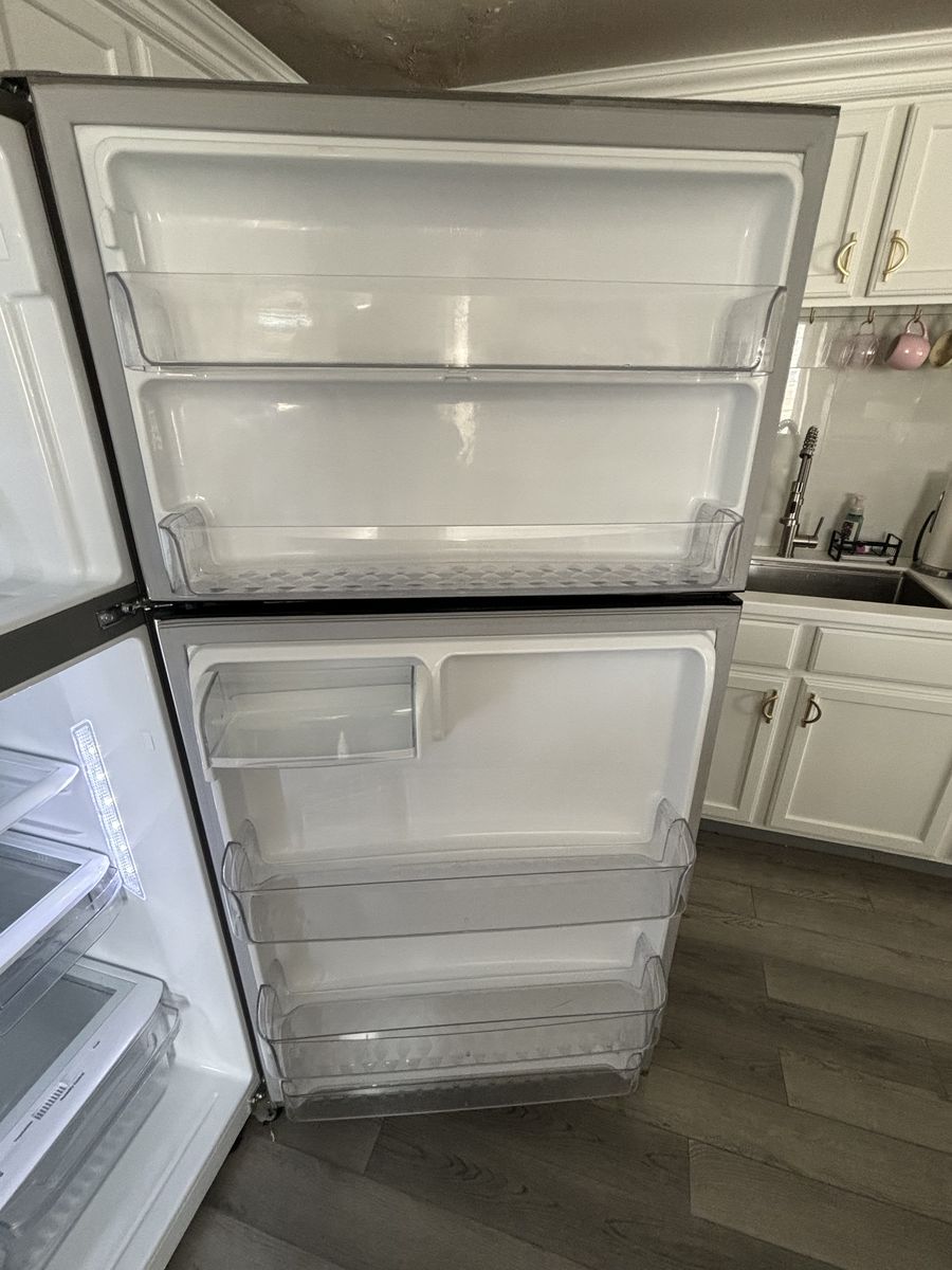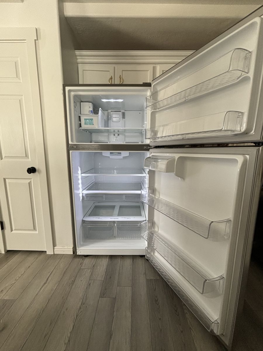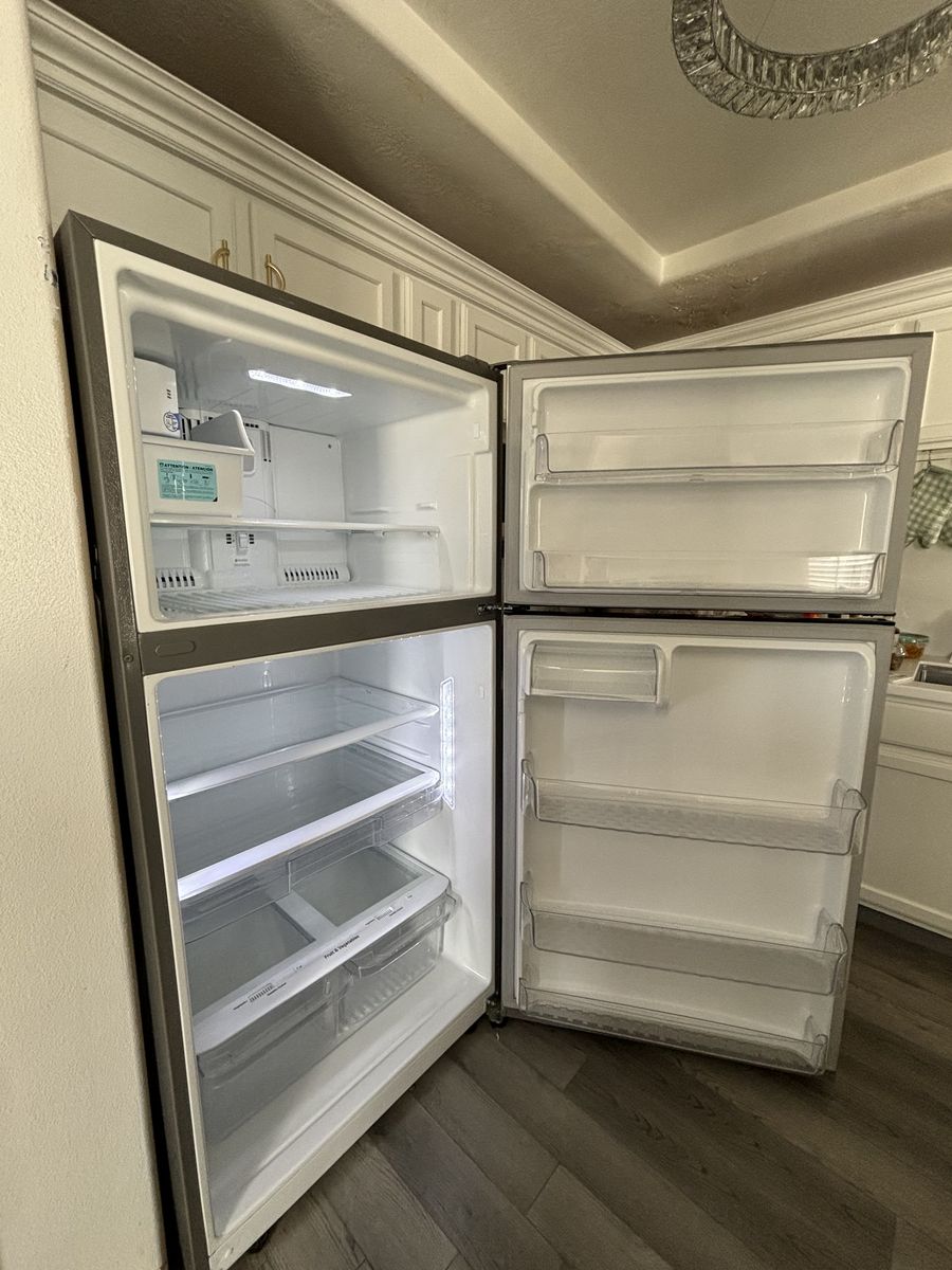 This beautiful stainless steel top load freezer refrigerator works and looks amazing! keeps everything cold and has no issues. used but works and looks brand new. Any Questions feel free to text me at 801-633-1744 •Features Include