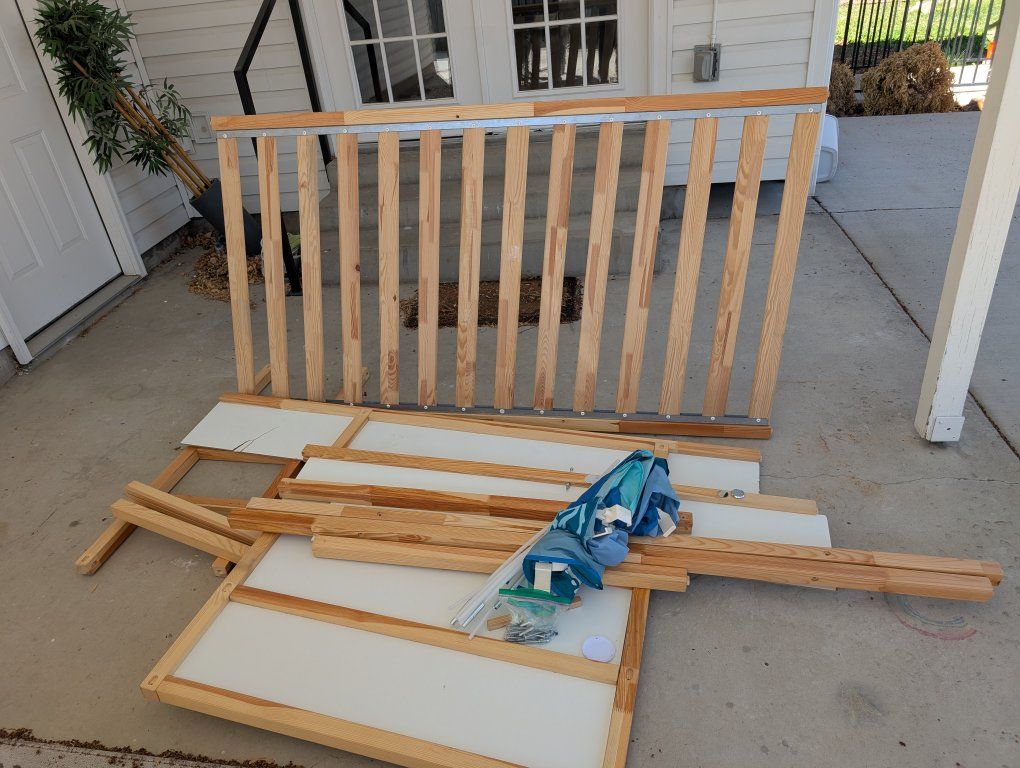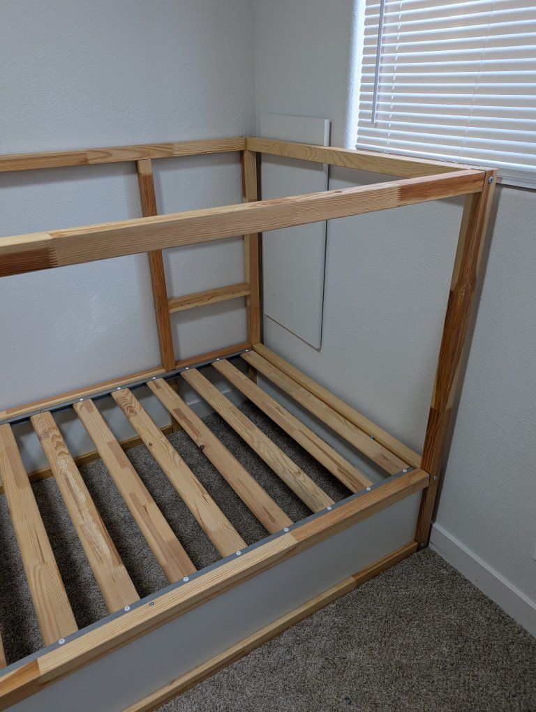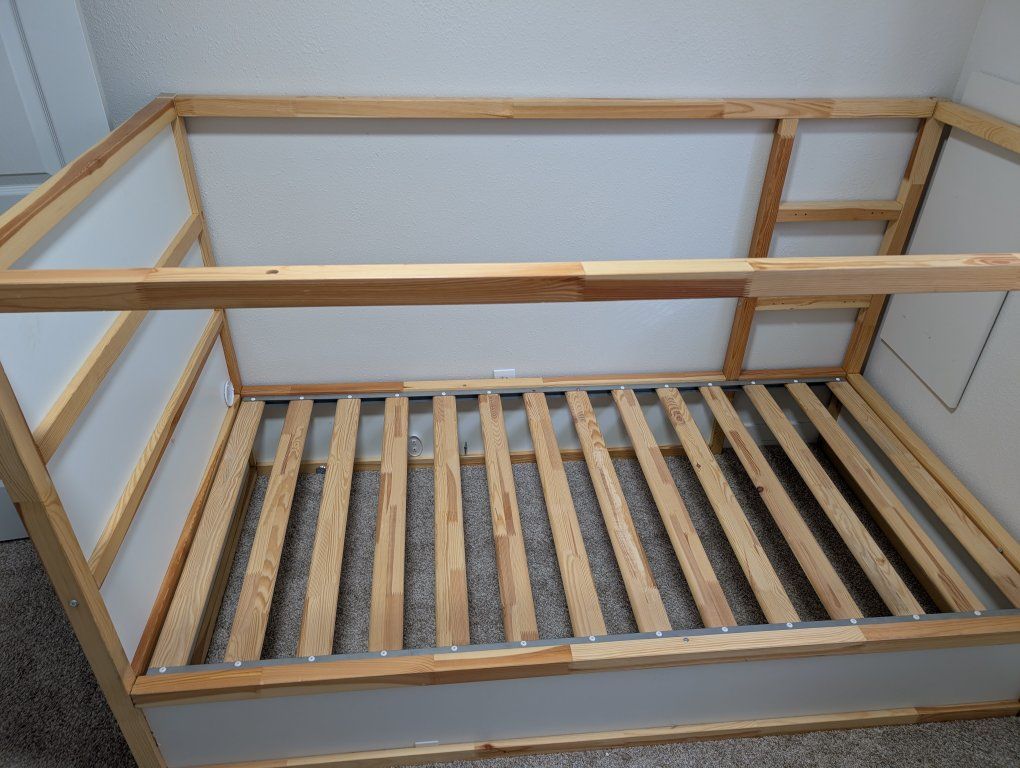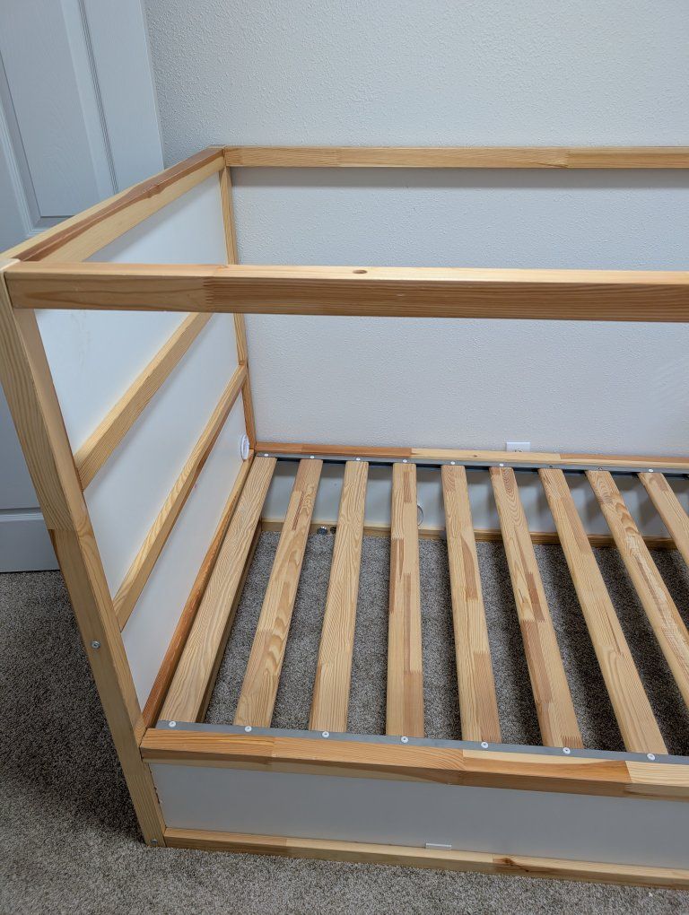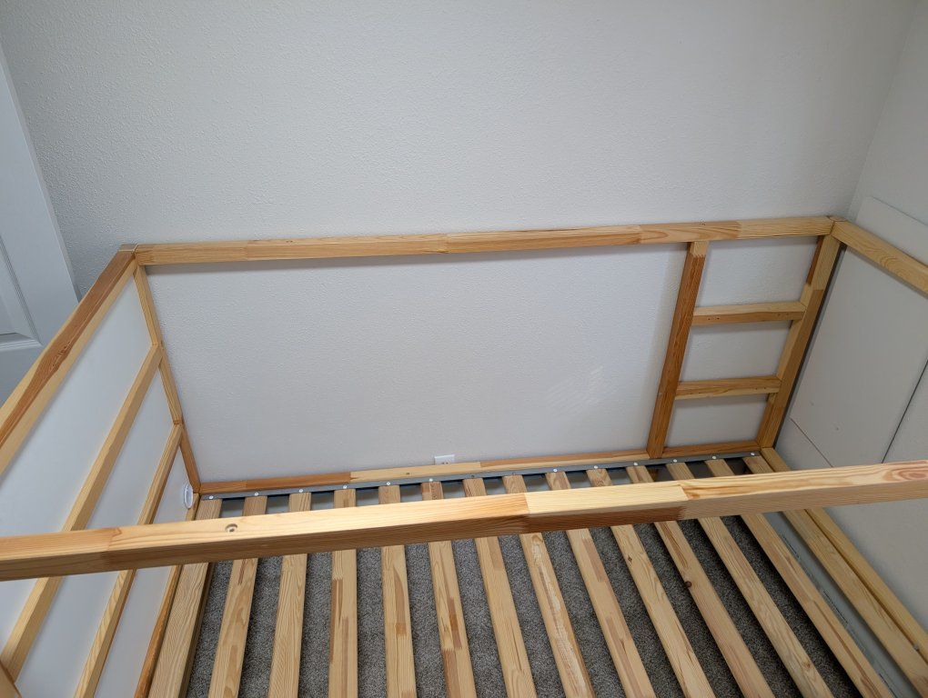 Bed for kids. Can have the mattress on top or converted to be on bottom. There's a little bit of damage on one of the panels because it broke while we were moving it. Another small piece came off before I got it. Free. Must be picked up, Probably a good idea to bring a truck.