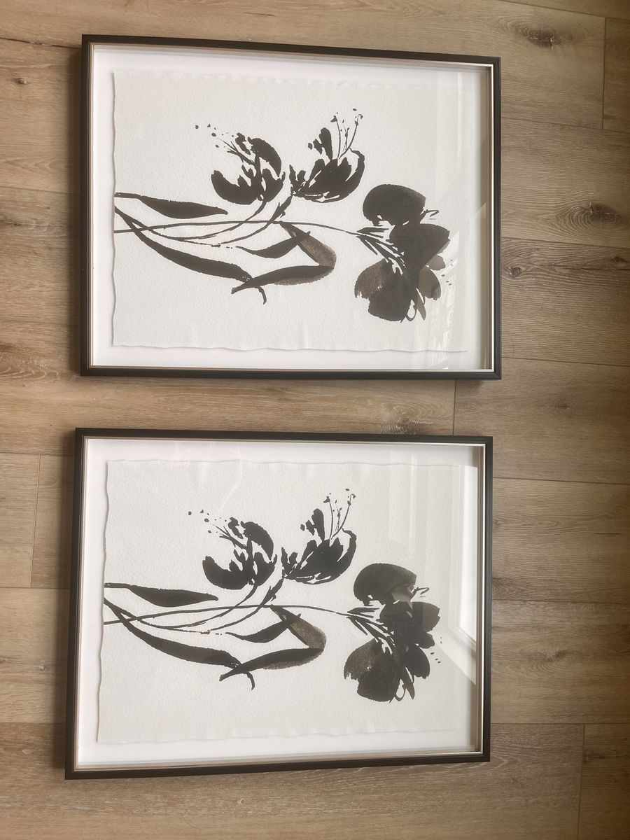 ApplePay2 framed wall art flowers. Black and silver frame.
