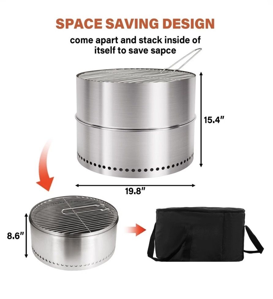 VenmoHGD 20 Inch Smokeless Firepit with Grill, Portable Wood Burning Fire Pit for ...