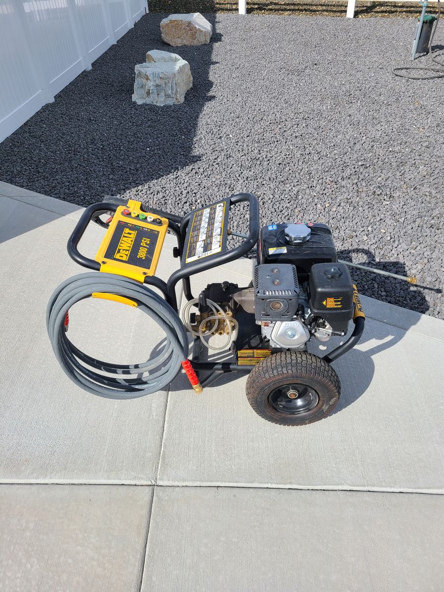 600 DeWalt gas pressure washer 3800 psi 3.5 gpm. Very good condition with low hours and new hose
