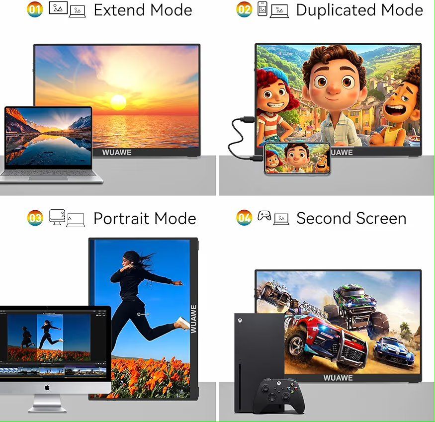 Multiple Display Mode: This portable display allows you to customize your workspace to meet your needs with multiple display modes, including duplicate, extended, second screen, and vertical display.
