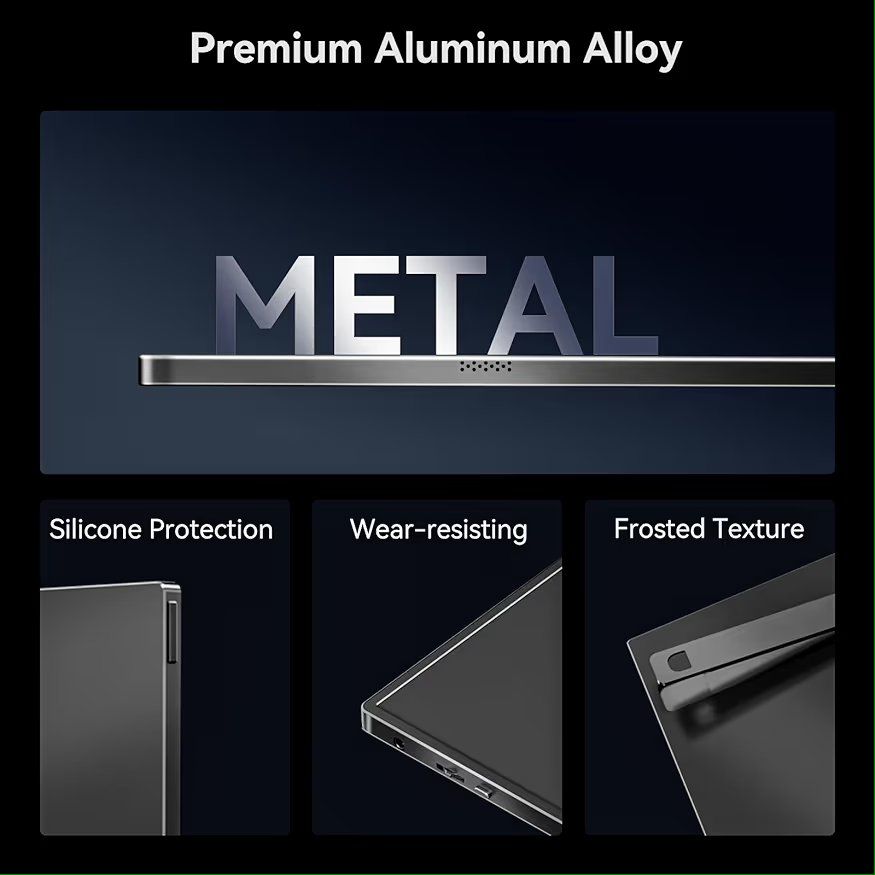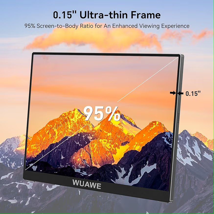Aluminum and Lightweight: Our portable display features high-quality aluminum material, ensuring not only robust durability but also enhancing its elegant aesthetic. Look no further than our ultra-sleek laptop screen extender! With a slim, lightweight design and a durable metal shell, this laptop extended monitor is only 1.6 pounds and 0.4 inches thick, it's the perfect size for packing in your bag and taking with you wherever you go.
