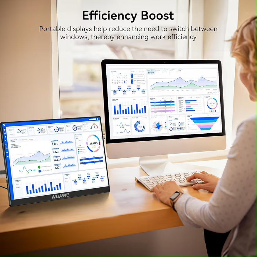 Efficiency Boost: Use it as your extended screen to manage multiple tables and websites without switching back and forth, enhancing your work efficiency. Adjustable stand for easy switching between landscape and portrait modes, portable design for quick setup anywhere.