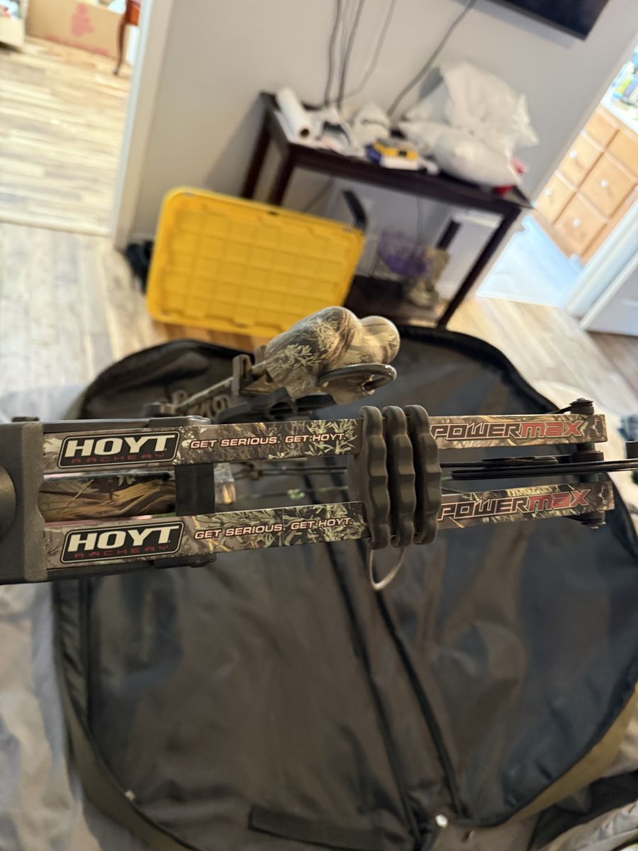 Hoyt Powermax compound bow in great condition. Fully set up and ready to hunt. Includes Fuse sight, quiver, stabilizer, and Cabela’s soft case.