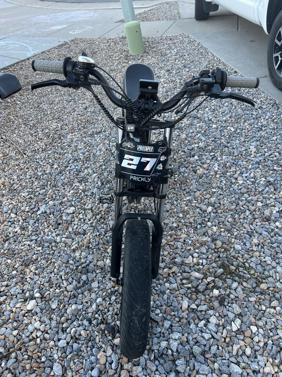 Venmogood condition, needs new back tire, top speed 33 mph, with road tires, full twist, and charger included an over all great bike
