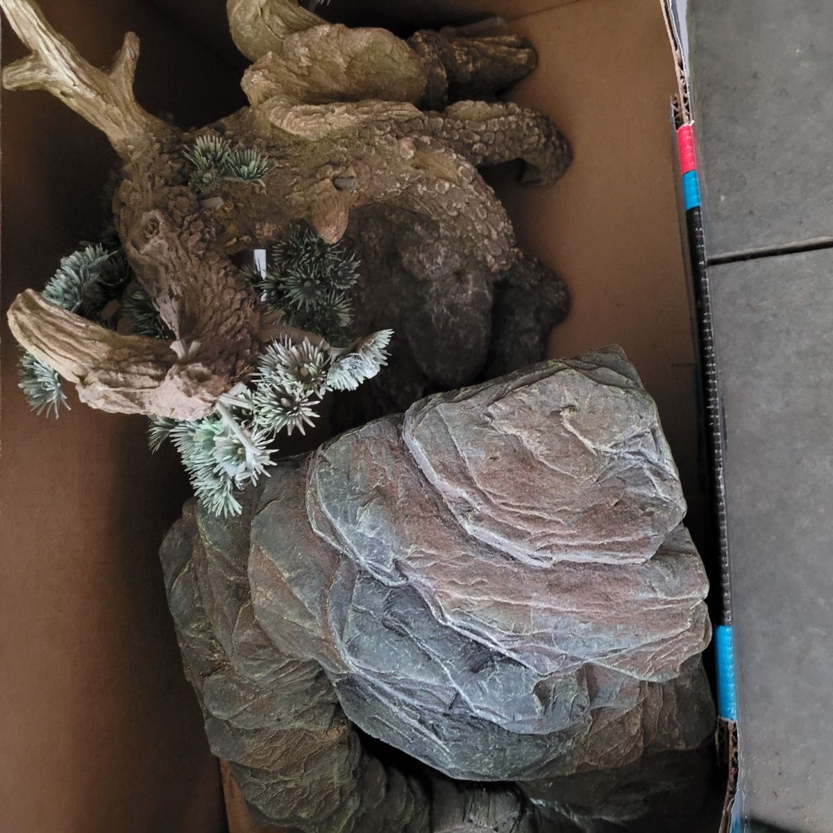 VenmoYou can have it all for free, you just have to take it all. Terrarium is 36hx17tx18d. there is a tree, basking rock, hidding rock, water bowl, food bowl, lights.