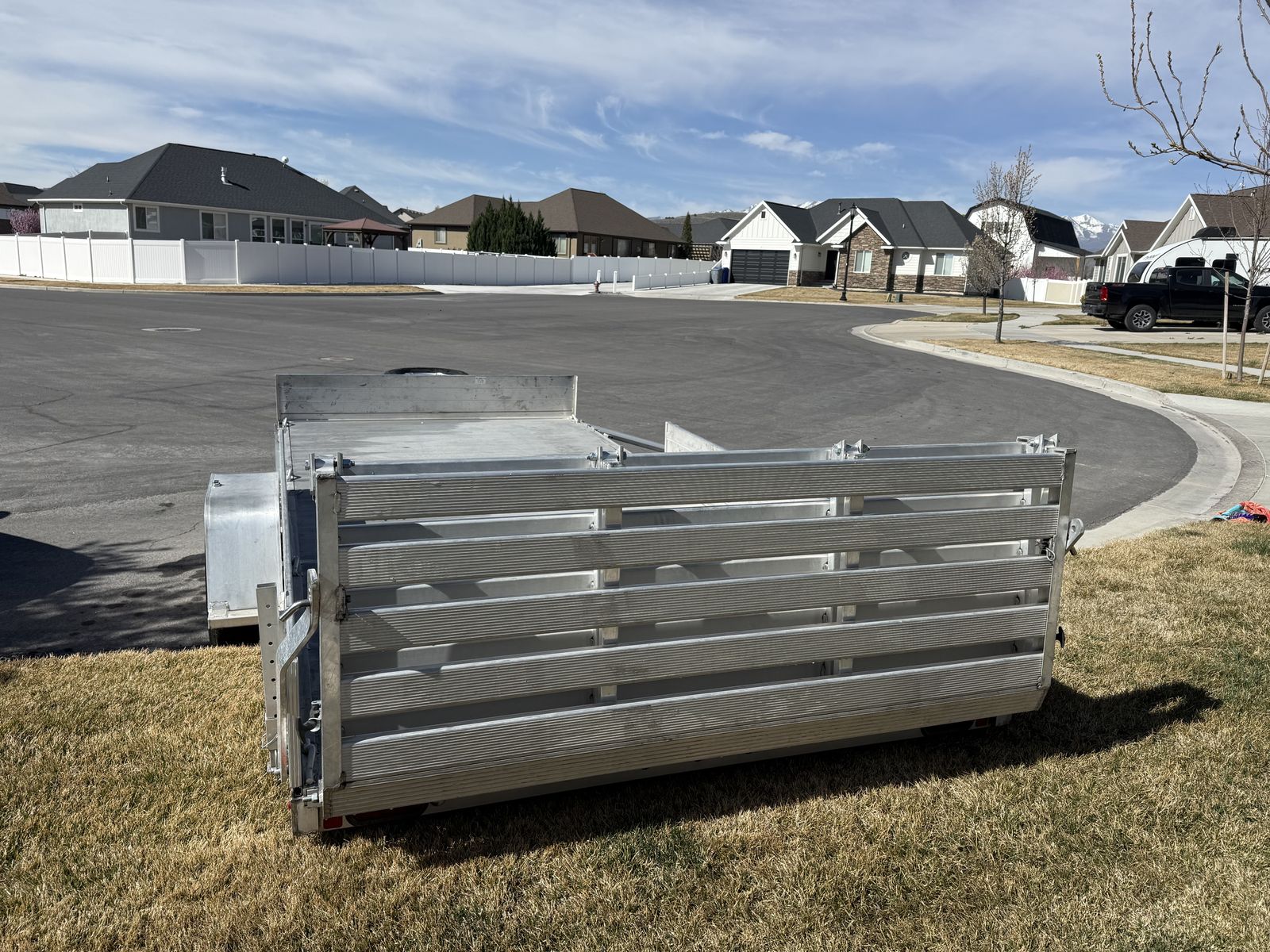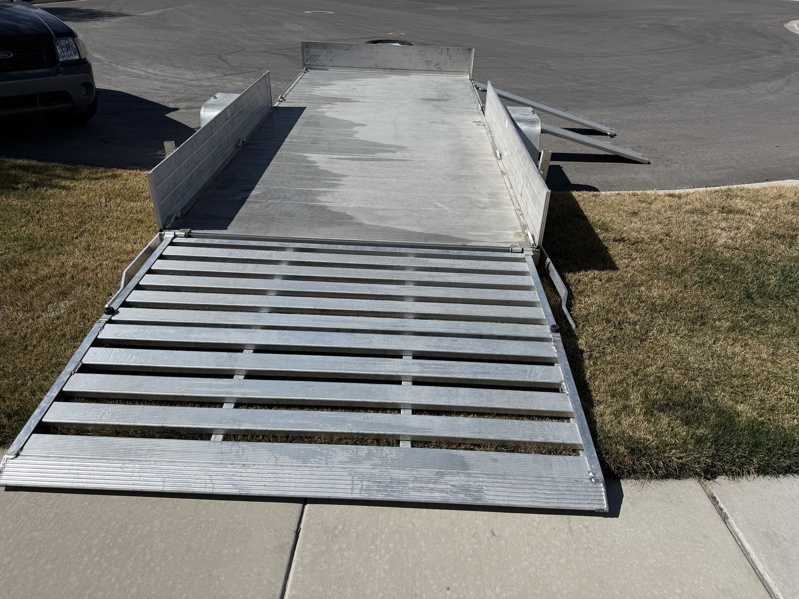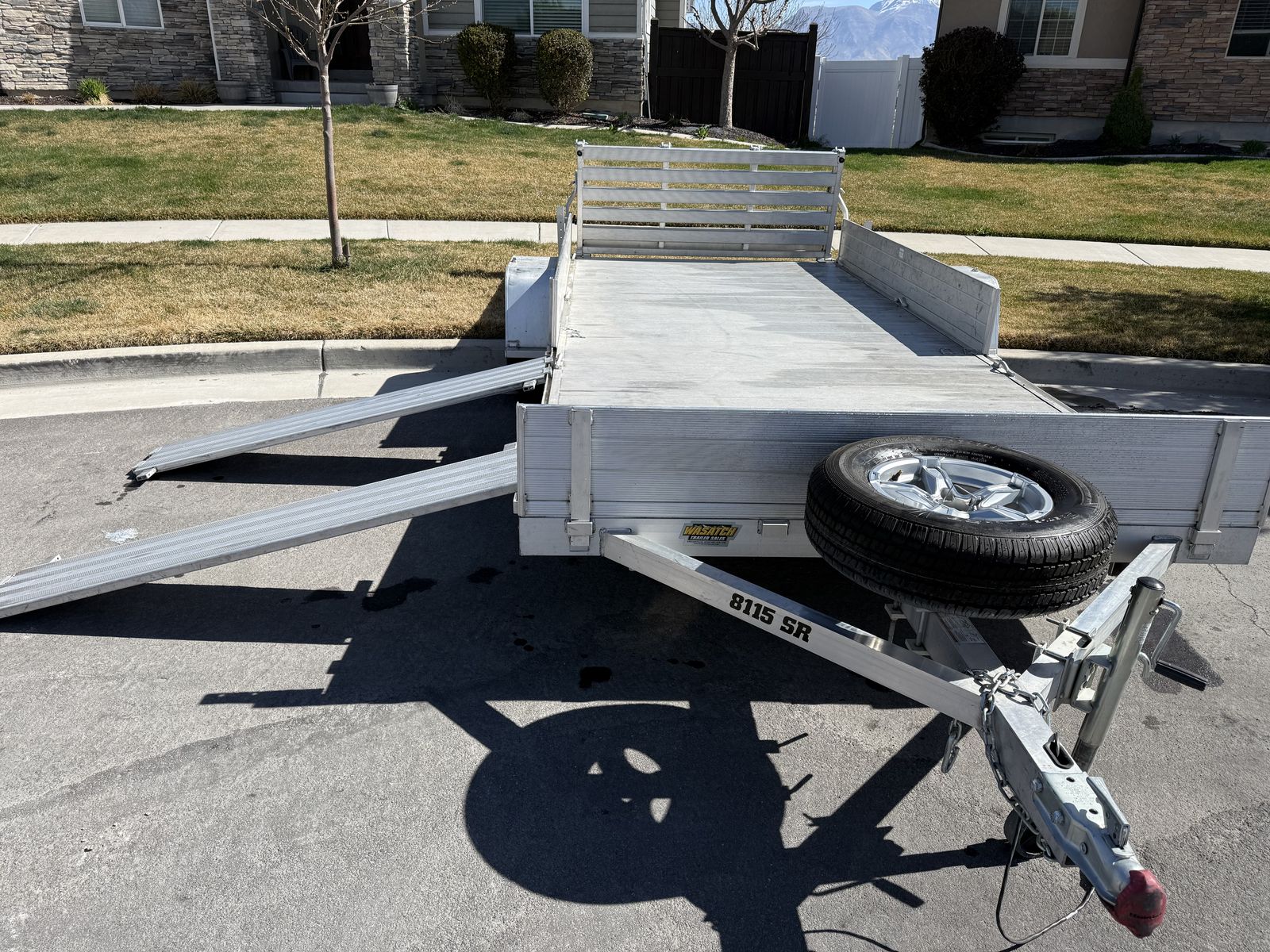 ZelleNew condition Aluminum toy hauler or utility trailer. 81” Wide by 15’ long. Completely loaded. Retails over 6k. Completely removable sides to make it perform like a flat bed. Sides also convert to ramps to side load easily. Rear loading jacks for stability as well and 8 integrated tie downs inside. Aluminum matching spare tire on the front tongue mount. Rear loading ramp with 4 ways to stow it. Sealed LED lighting around. Single axle to avoid registration. I was the original owner that purchased from Wasatch trailers and have used it a dozen or so times for periodic dump runs etc. Tires show like new and no dents or scratches or issues with anything at all. Stored its whole life in a conditioned garage to keep it out of the elements. This is one of the most versatile trailers out there! Selling to make room in the garage and just don’t use it enough. See Less