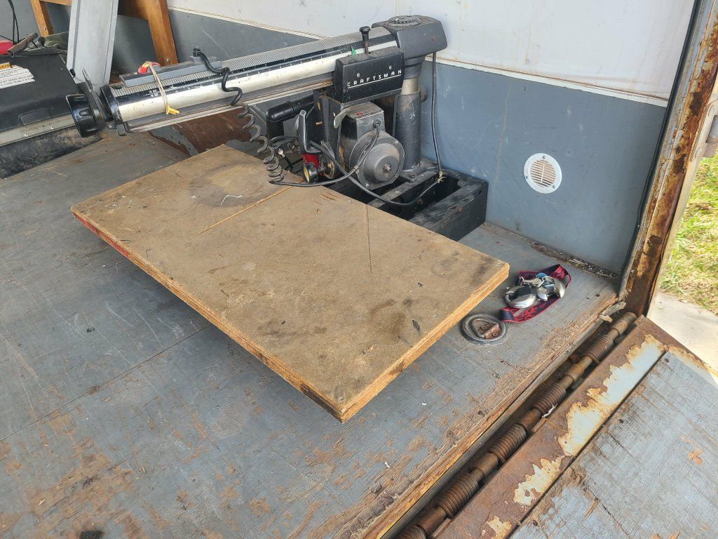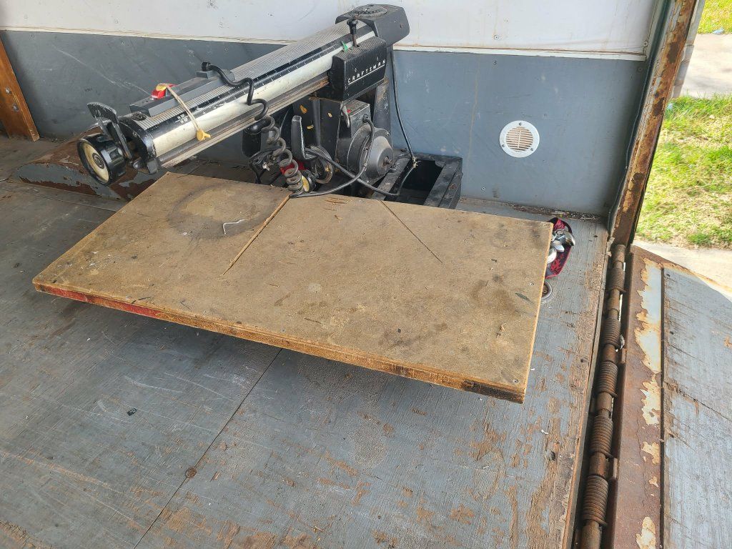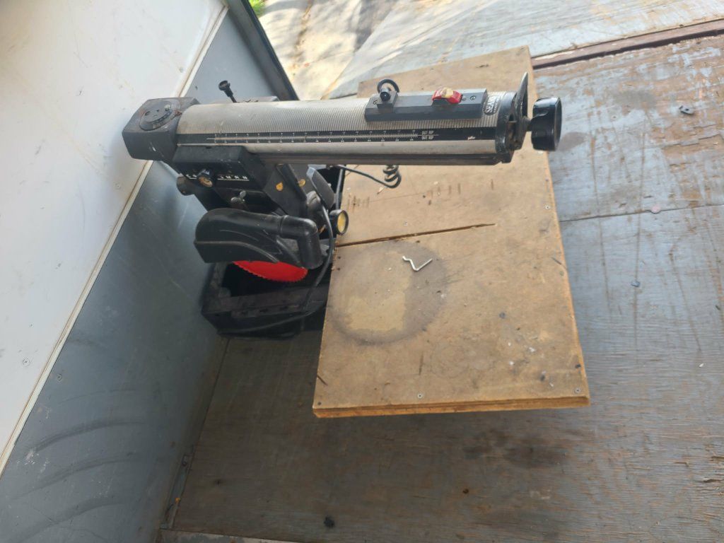 Craftsman radial arm saw with table. Very large and heavy, please bring help to lift, I can't help. It is right by the door of my cargo trailer so easy to lift to your truck.