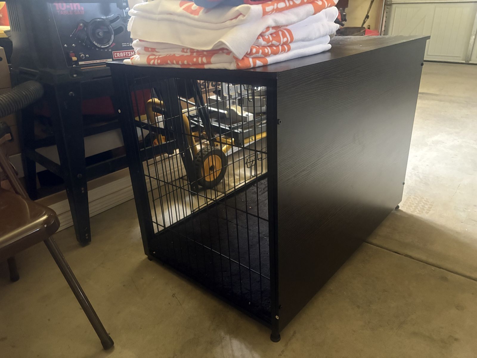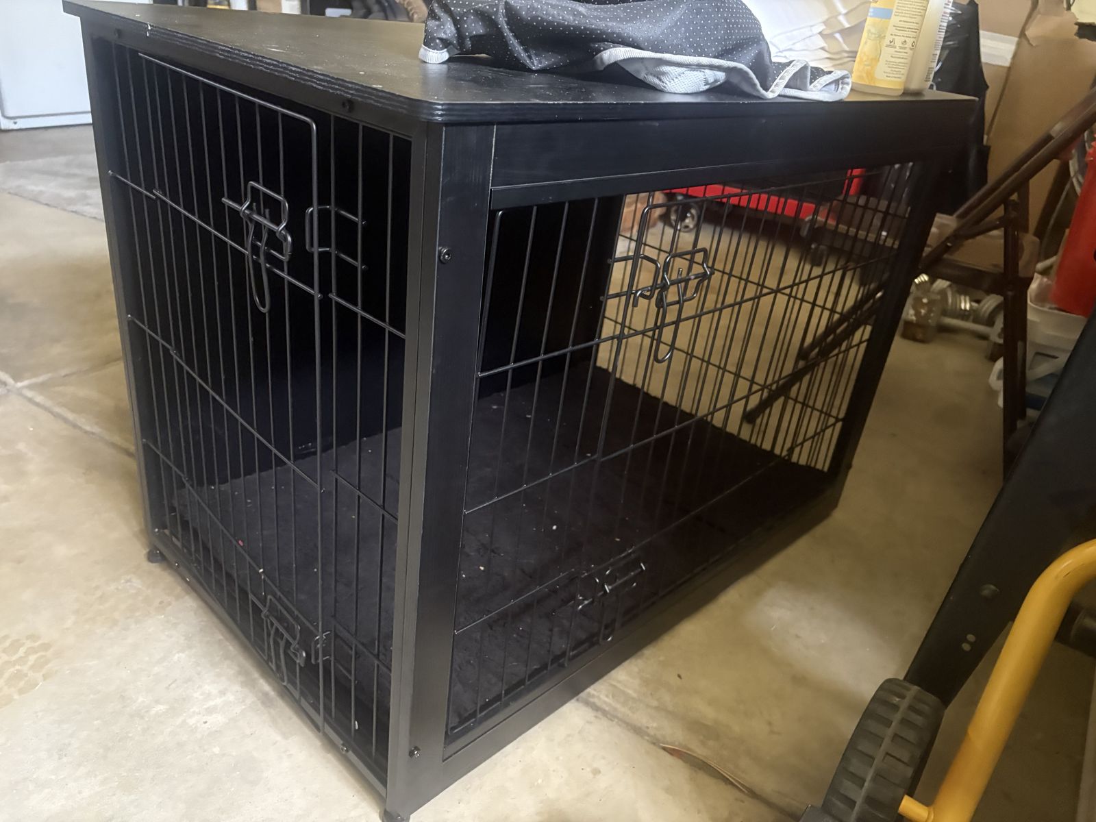 great for smaller dogs or big puppies, has a crate door on each side and perfect for storage or decor on-top where the dog cannot reach.