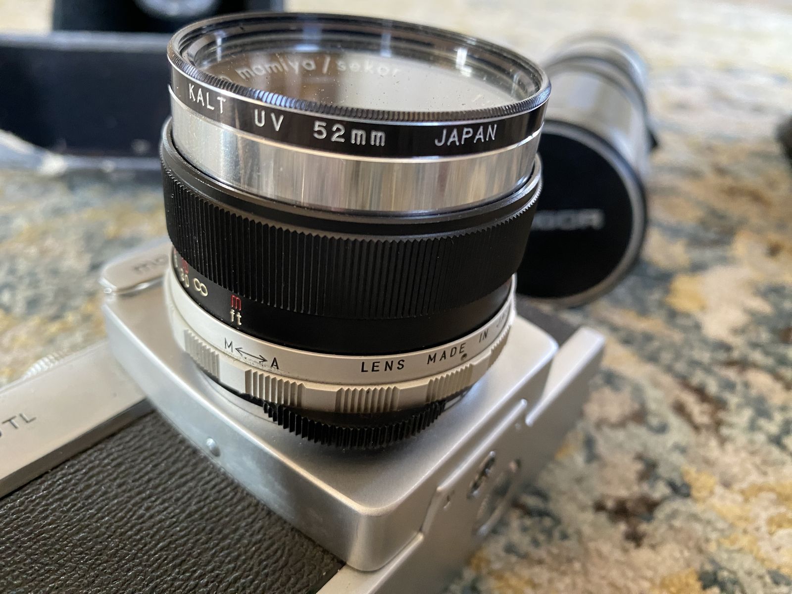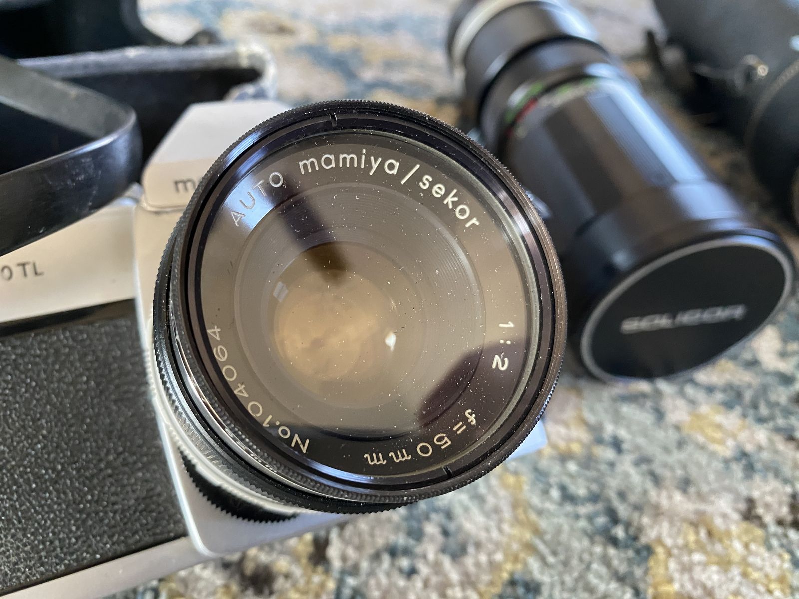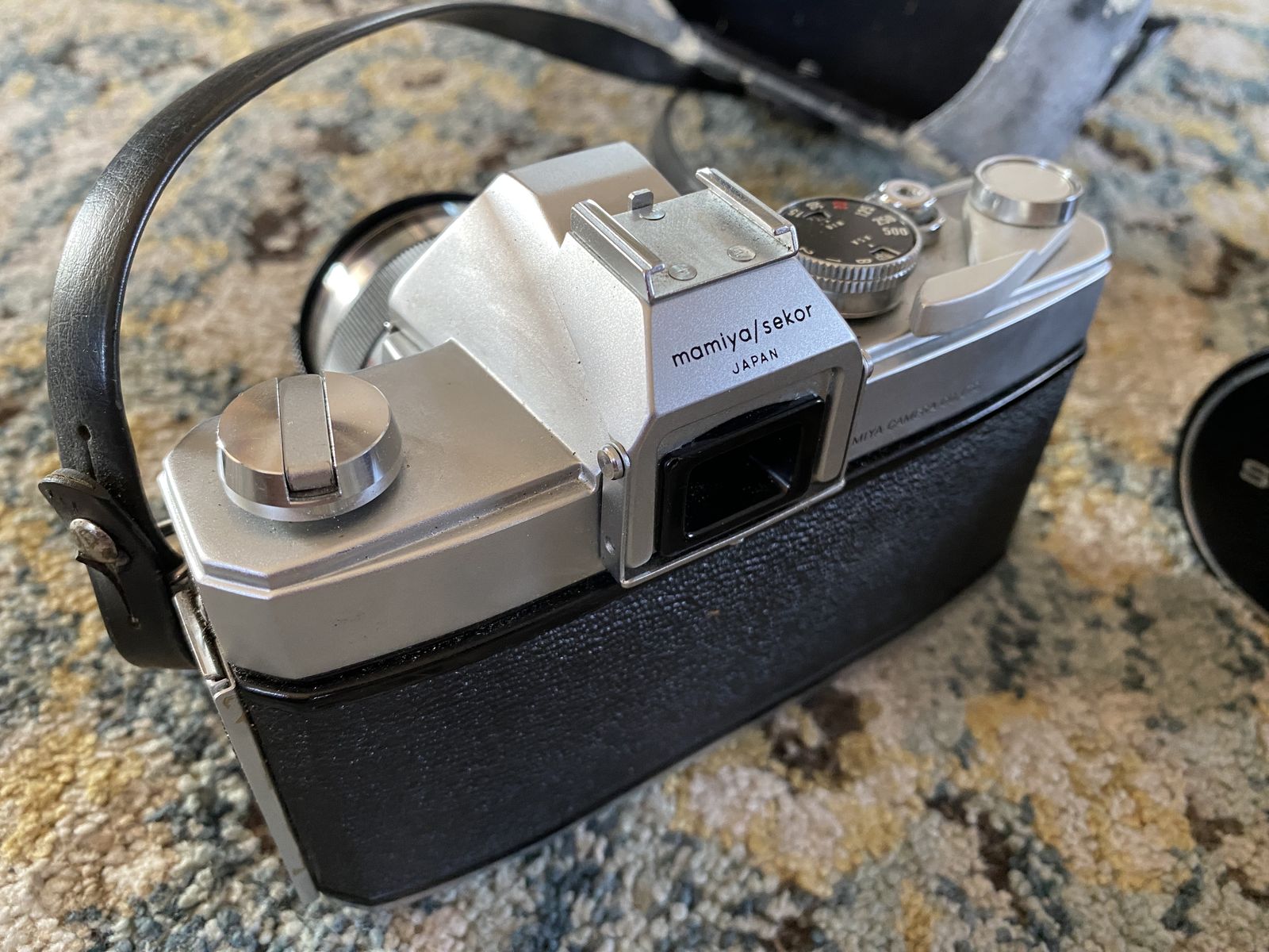 1960s era Mamiya/Sekor 500TL Japanese made 35mm print film camera. The only thing electric on the whole camera is an internal light meter. The rest is manual. Everything appears to work flawlessly. Comes with two lenses, a 50mm f2 and a 90 - 230mm f4.5 telephoto. Great for photography classes or art. Cash only. Pick up near downtown Salt Lake City. Cash only.