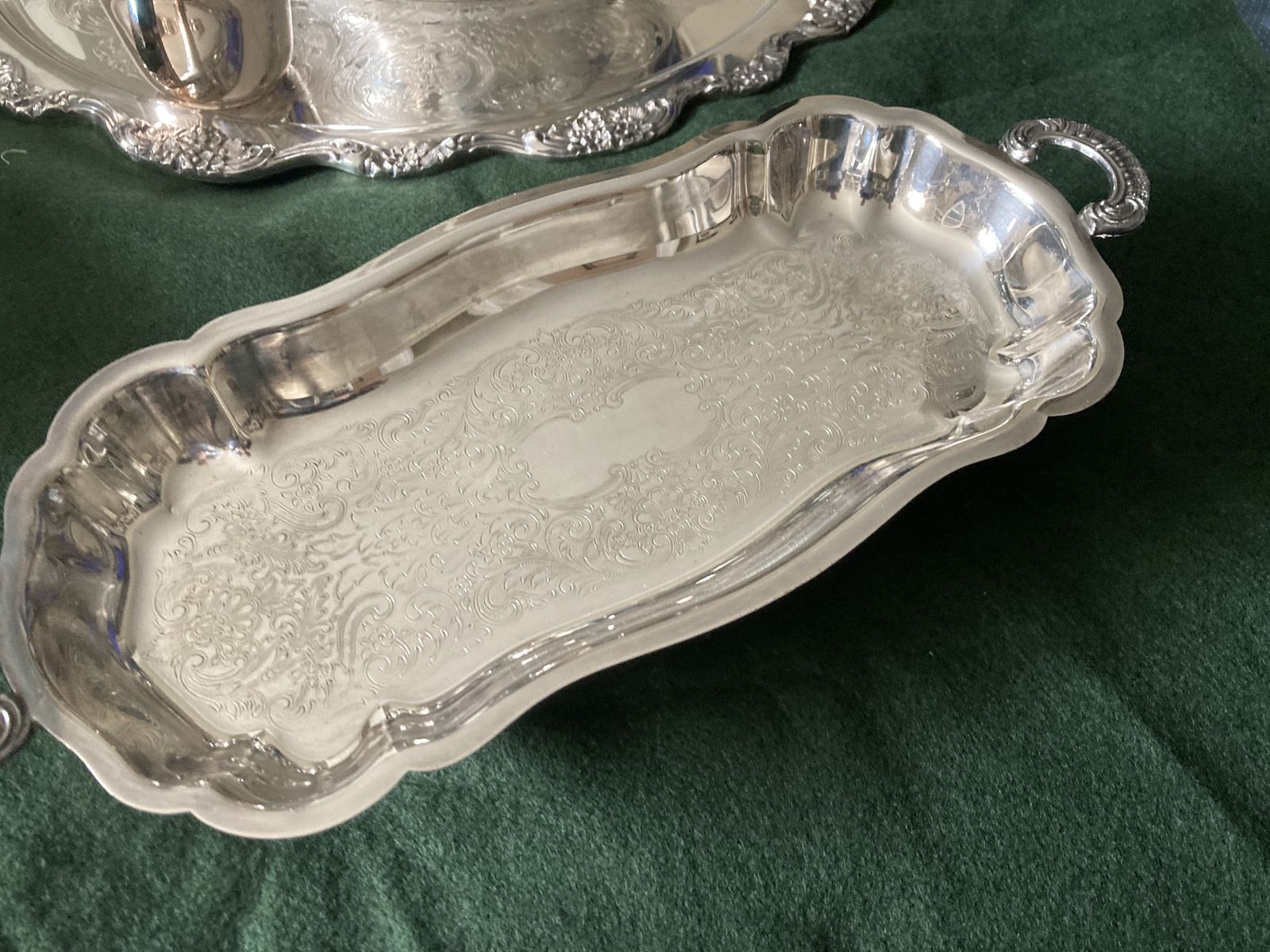 VenmoThere is a beatiful silver punch bowl with tray, and silver cups.($350) there is a vegatable dish($35) and a lidded serving bowl($40). What a wonderful addition to any of your holiday tables