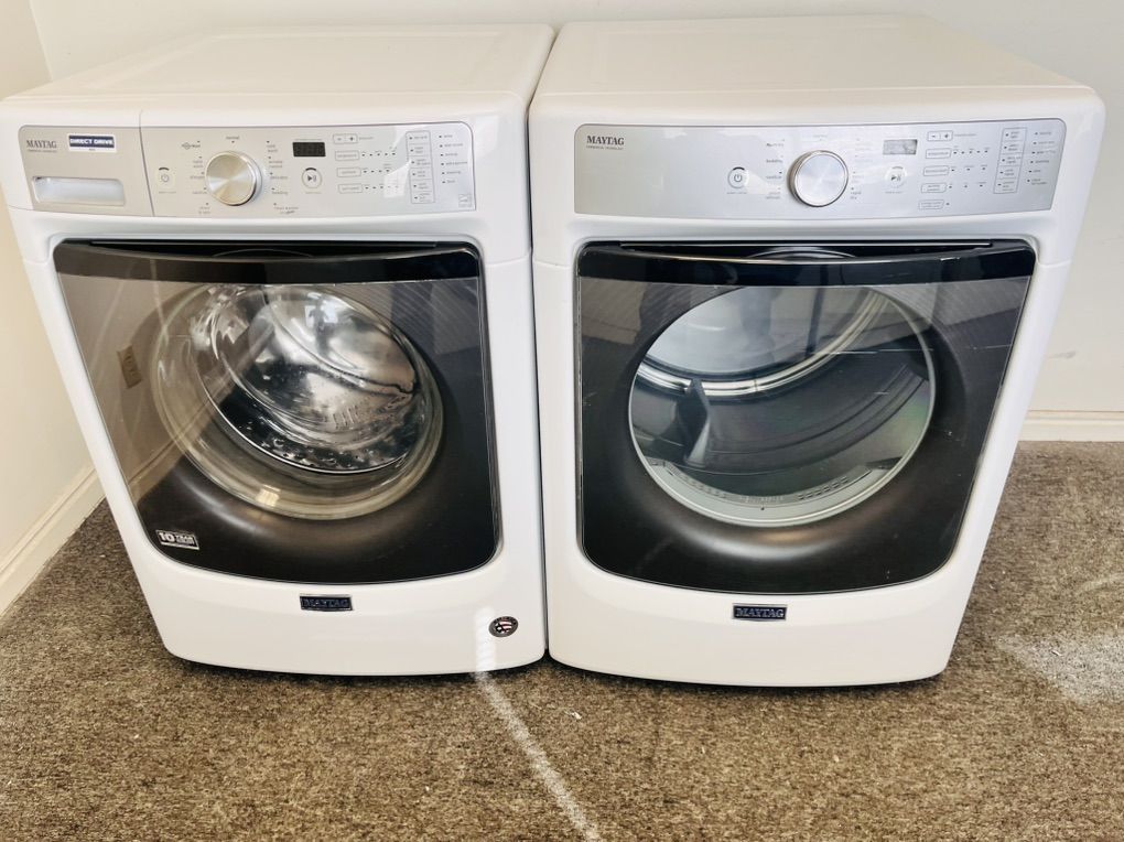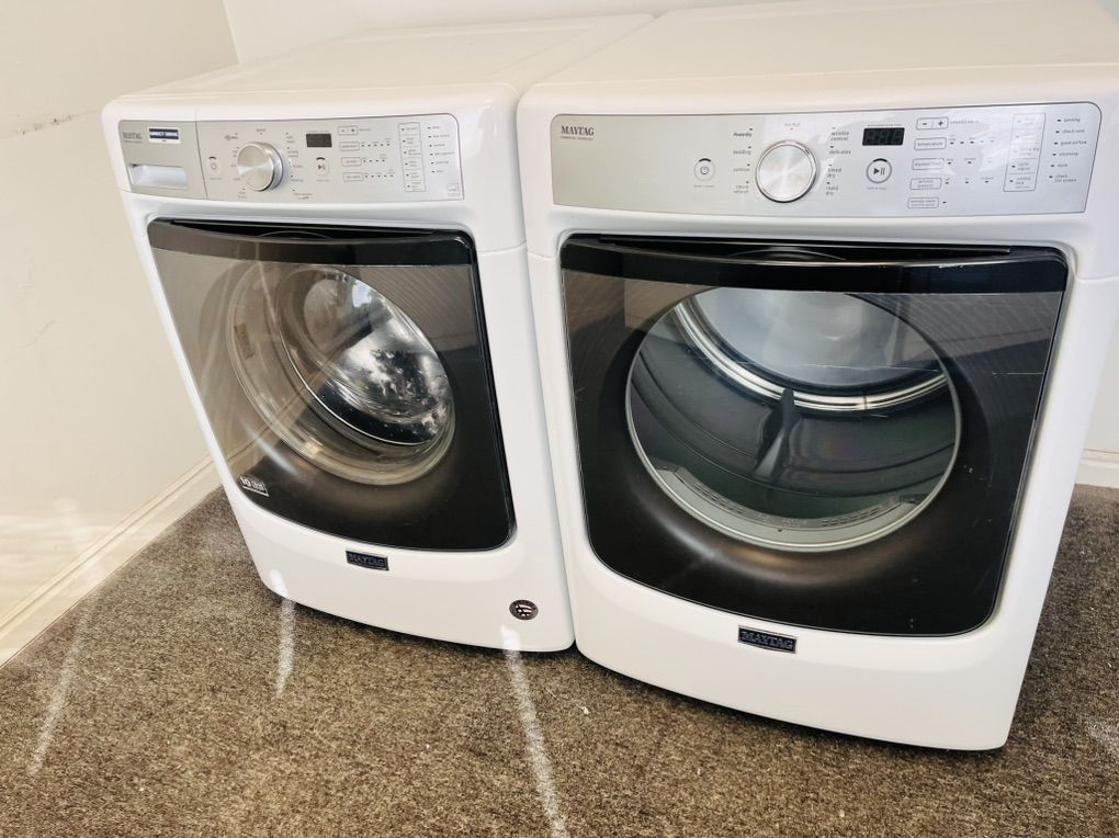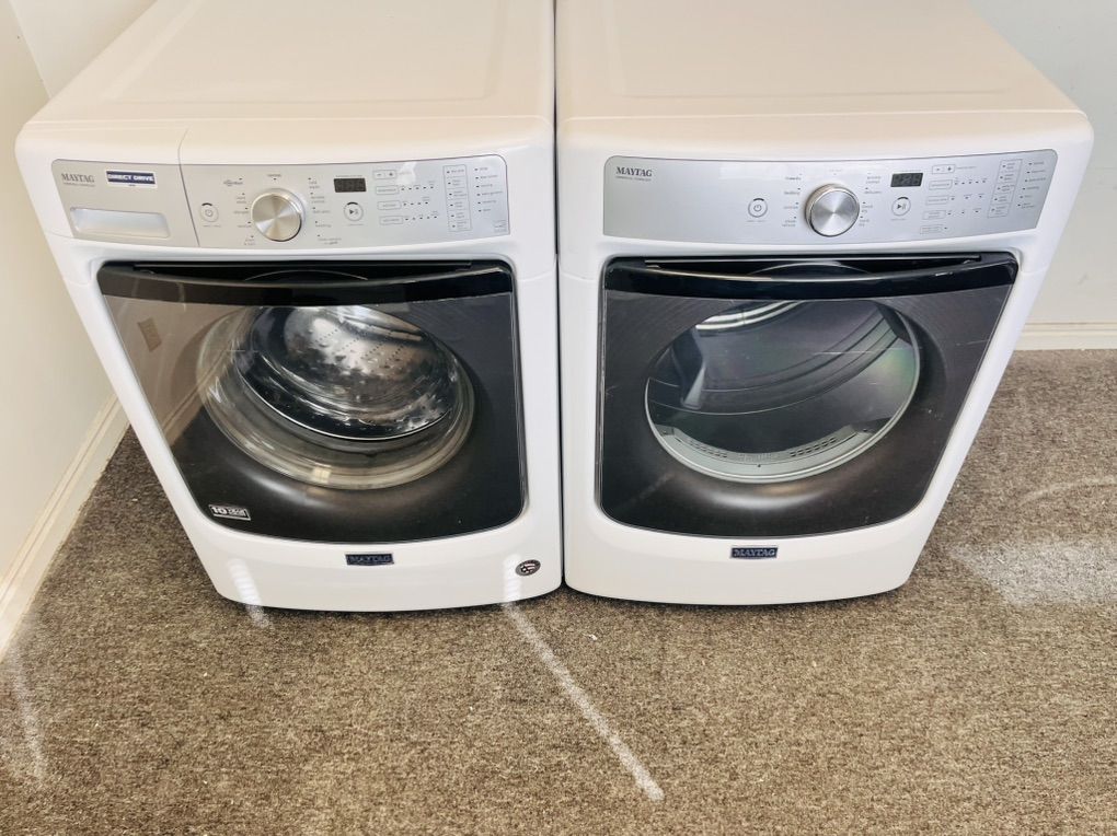 Very nice Maytag washer and dryer set in excellent condition and very clean inside and out,both work and look amazing. The dryer is electric and has steam refresh option to remove wrinkles and freshen up your load with steam it’s optional but it’s there if you need it, they can be stacked or side by side. Only $550 for the set I can deliver and install for a little extra call 8015403075