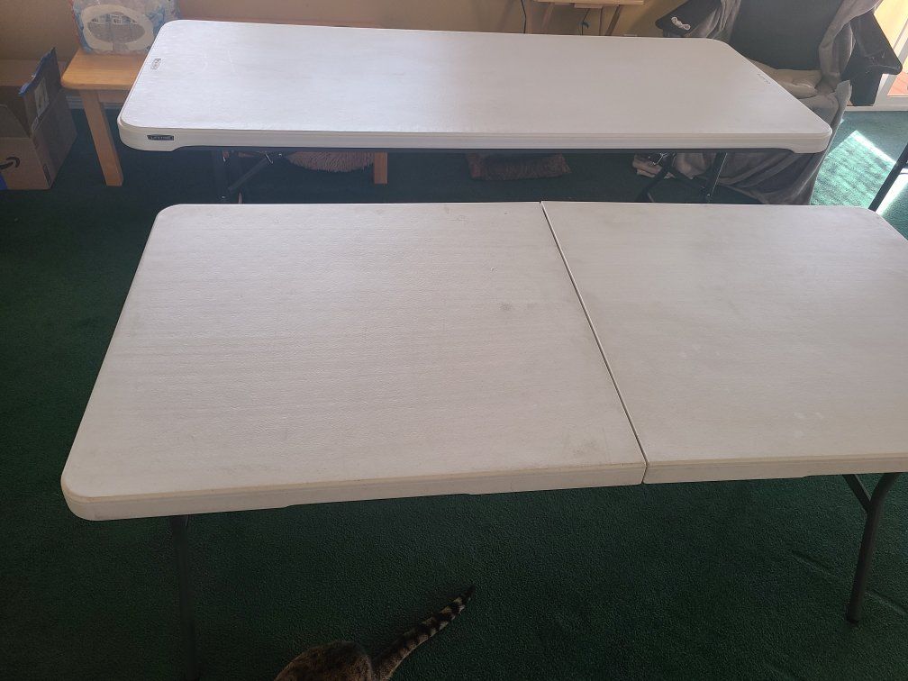 4ft x 2 ft 5ft x 27 inches fold in half table 6 ft x 29 1/2 inches