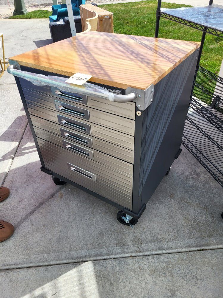 Seville Classic Ultra HD 6 Drawer Locking Rolling Cabinet 2 Keys Locking Caster Wheels 2.5" Thick Wood Top Lined Drawers 28"W 25"D 34.5"H Brand New & Assembled