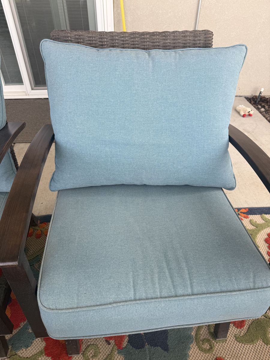 VenmoAllen and Roth teal patio cushions. Stain and weather resistant. 25 x 25 6 sets. Great shape! $150 for all or $25 per set.