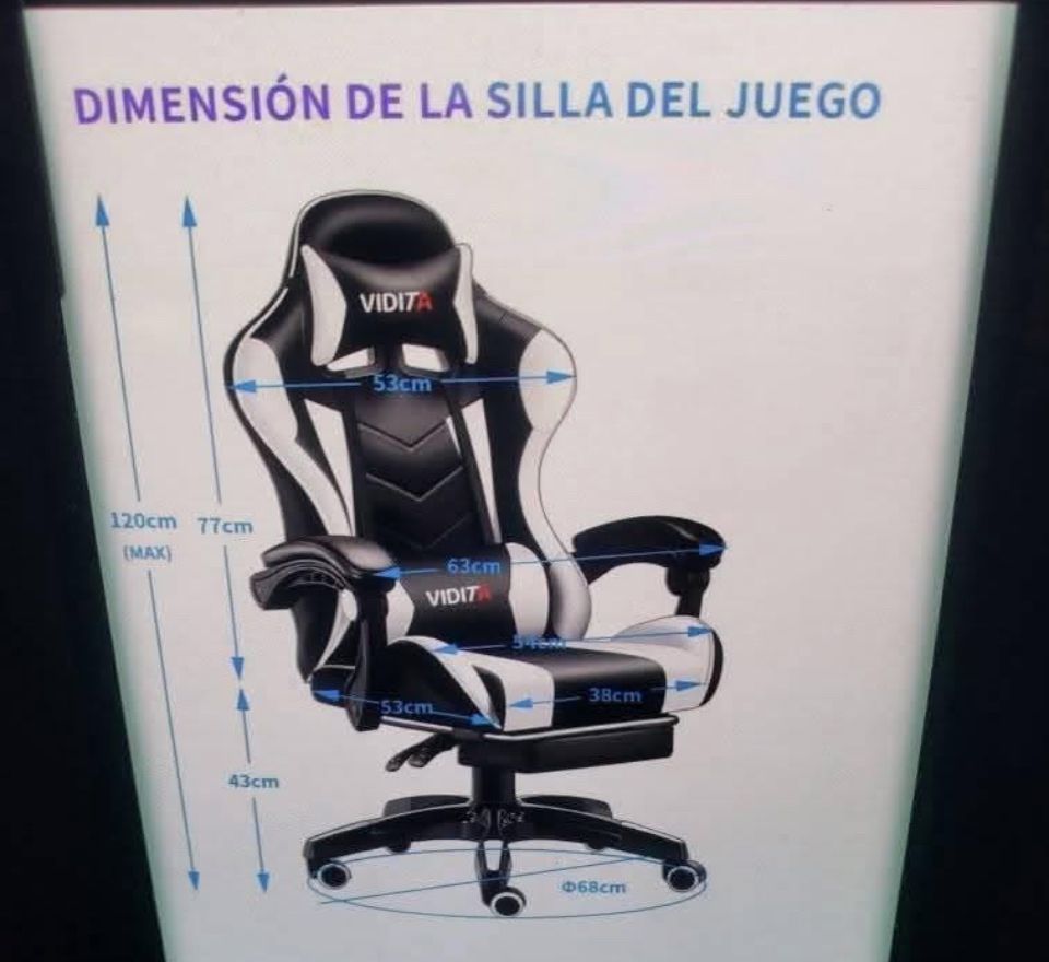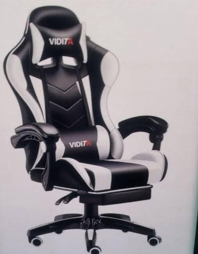 Brand new in box ( Black and white)VIDITA Gaming chair with Footrest Ergonomic PU Leather Reclining High back adjustable Swivel Lumbar support Racing Style for Gamers & E- Sport Enthusiasts- Perfect for long Gaming Sessions & Office Work