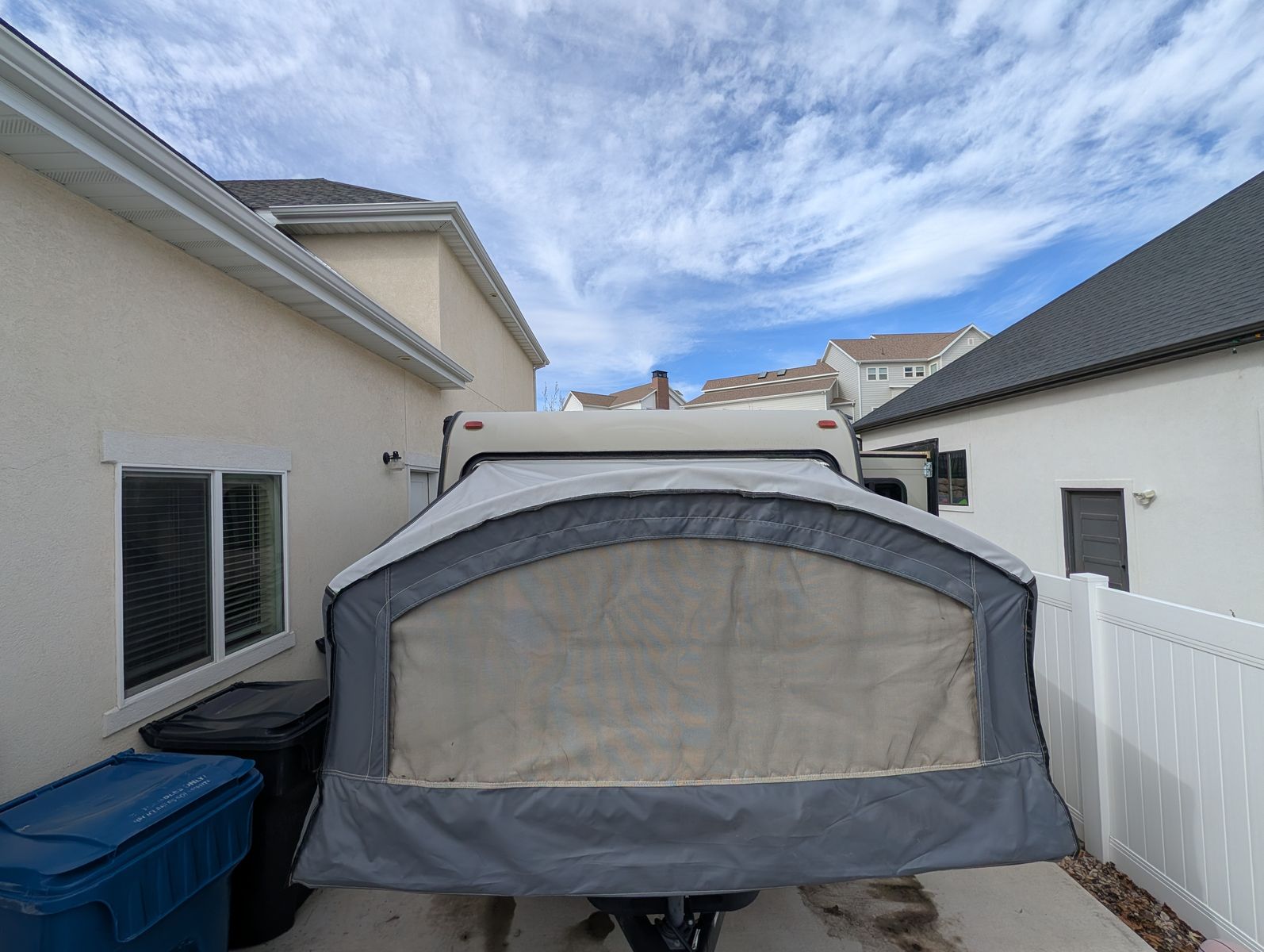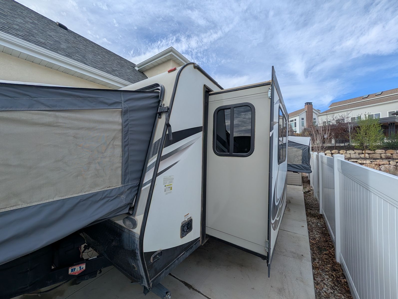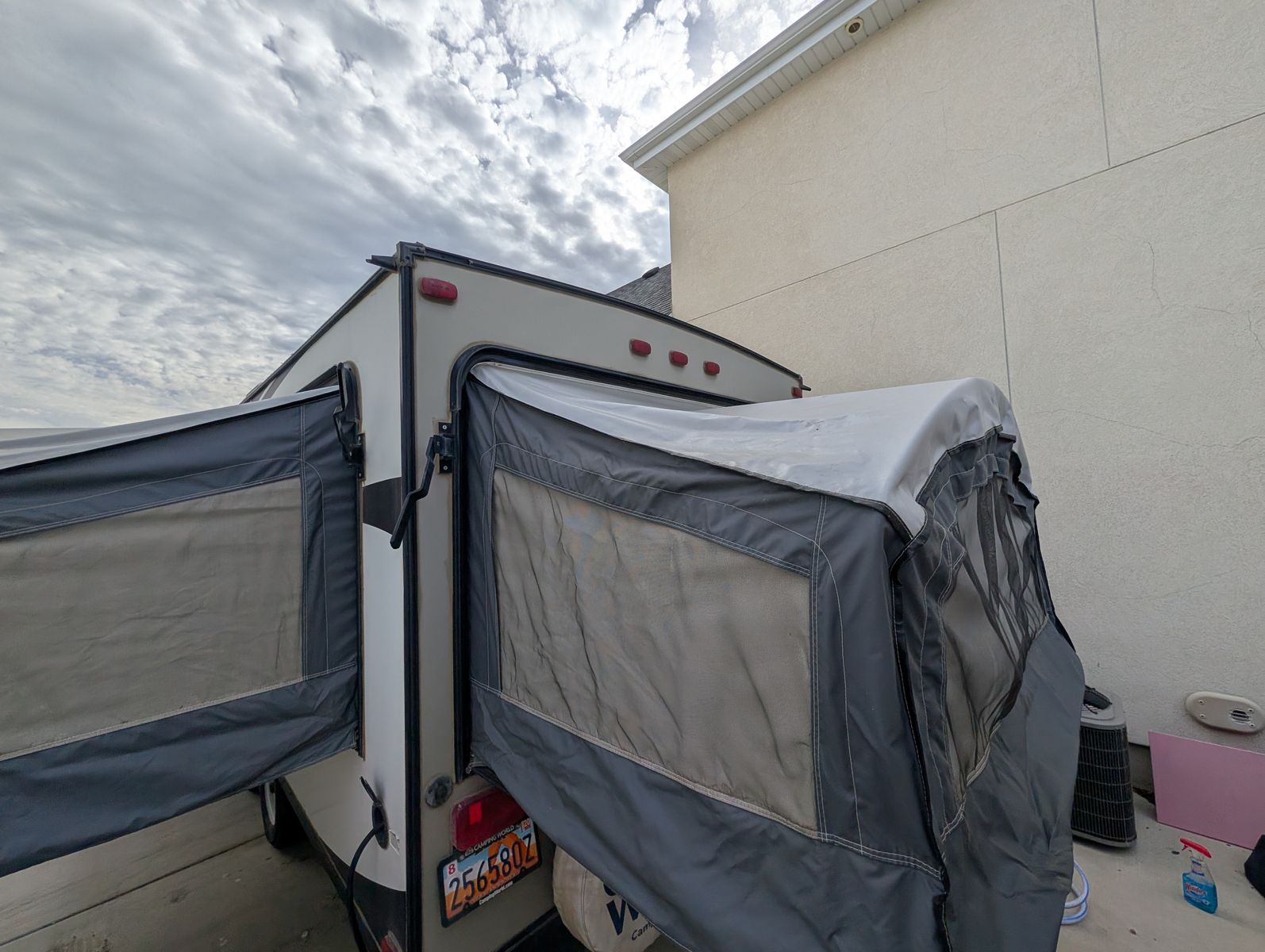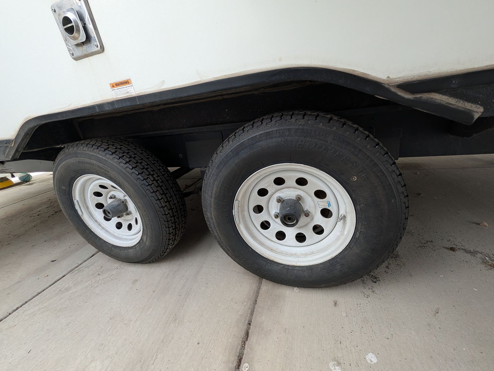 Brand new tires (last week), all pop-out tents in great condition, working freezer, fridge, sinks, oven, microwave, TV, AC, heater, water heater, showers (inside/outside), awning, pop-out.