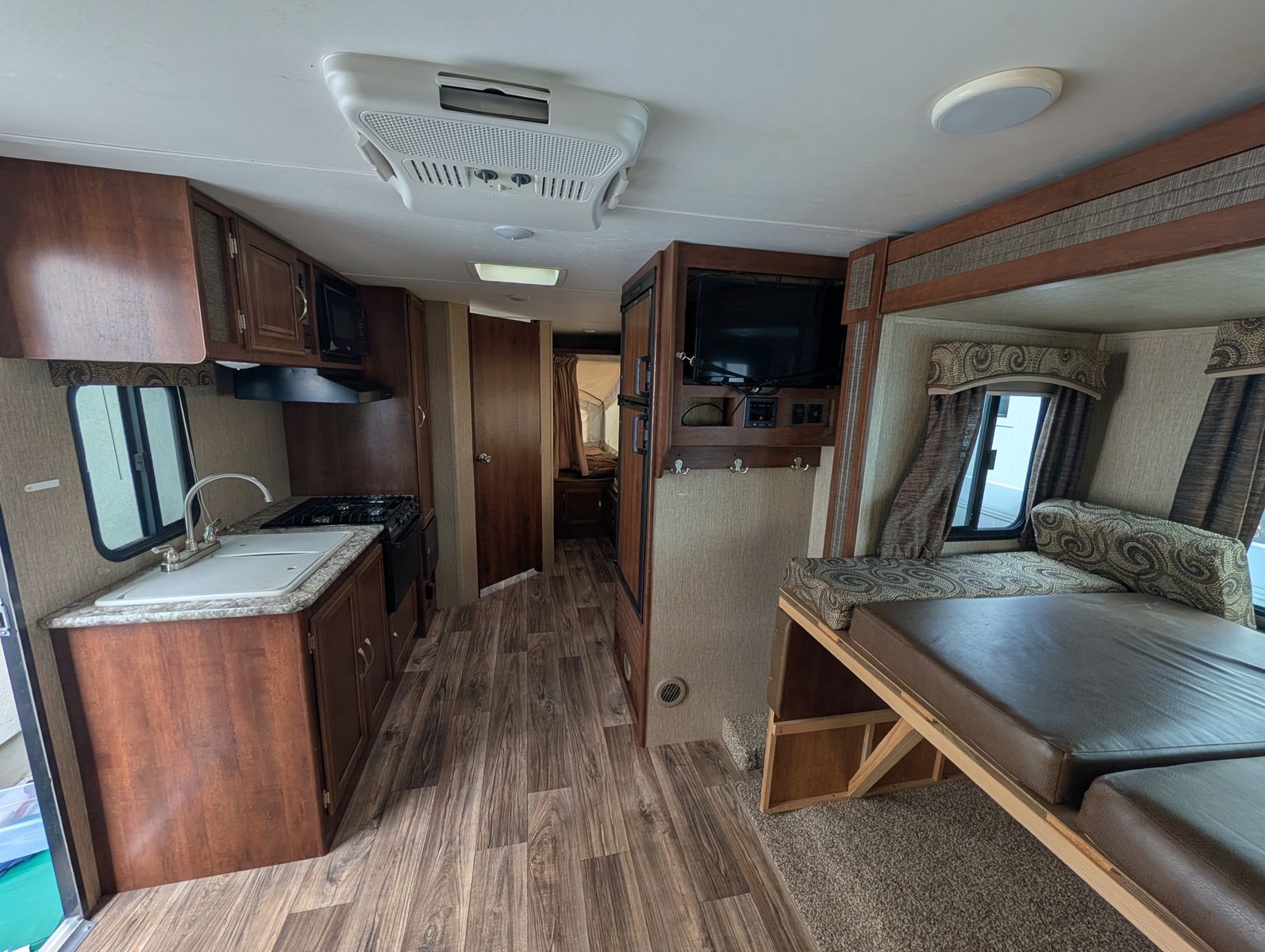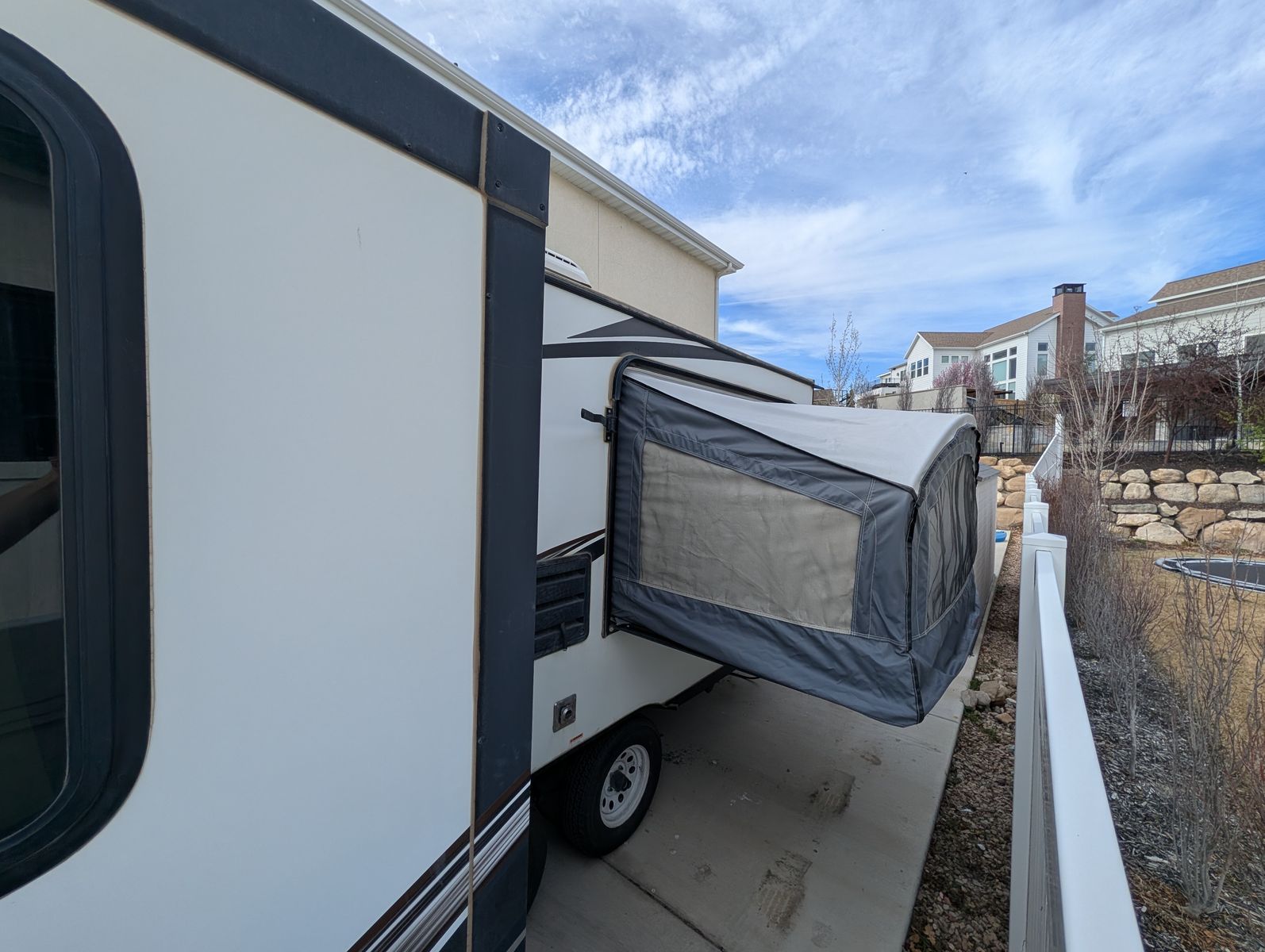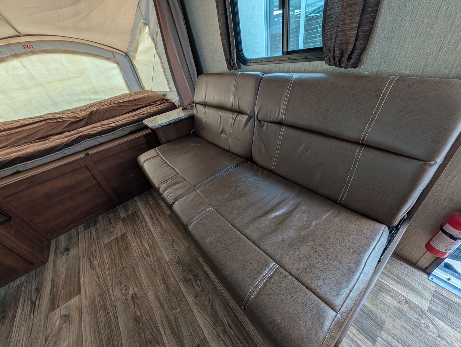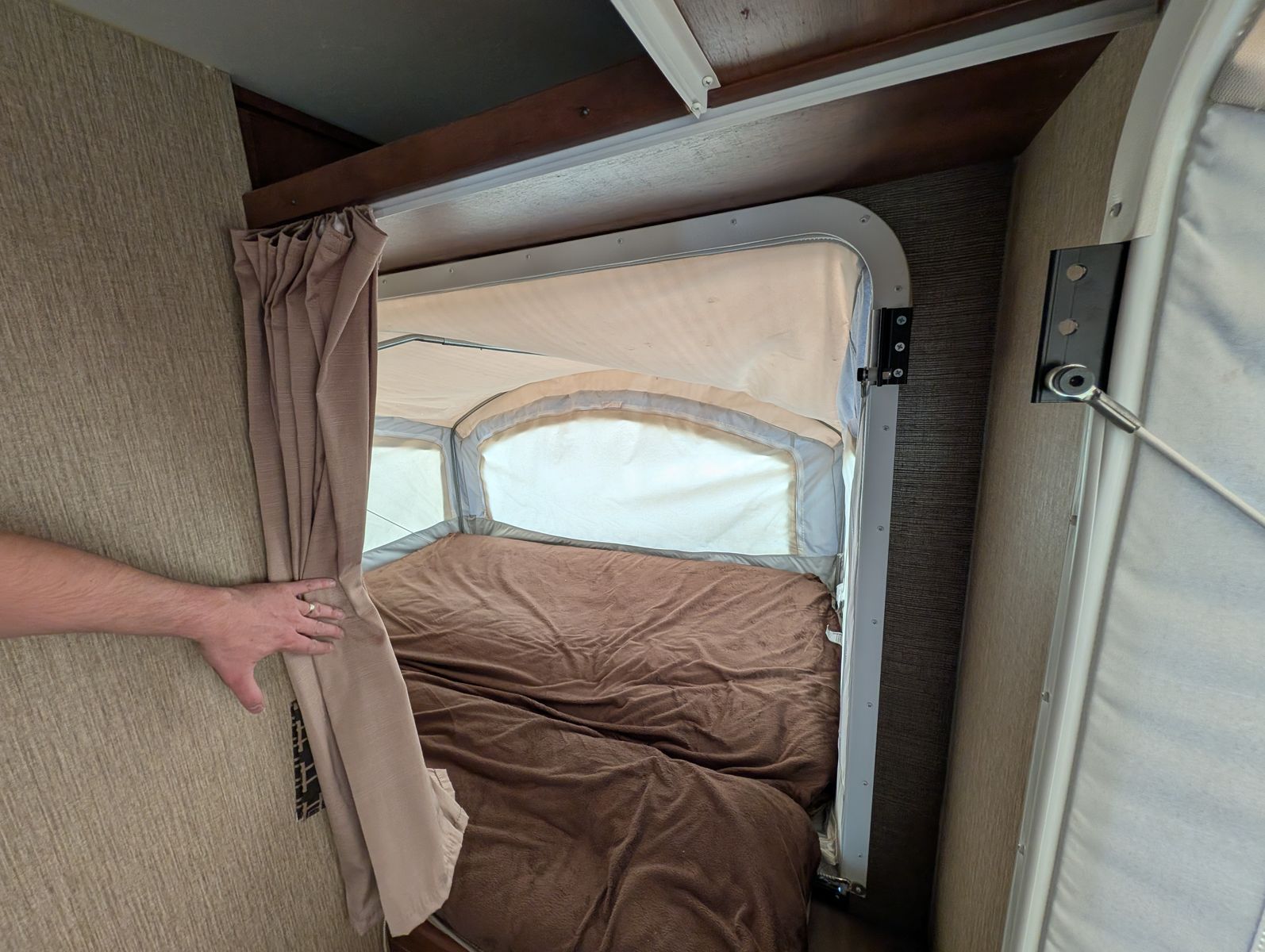 Brand new tires (last week), all pop-out tents in great condition, working freezer, fridge, sinks, oven, microwave, TV, AC, heater, water heater, showers (inside/outside), awning, pop-out.