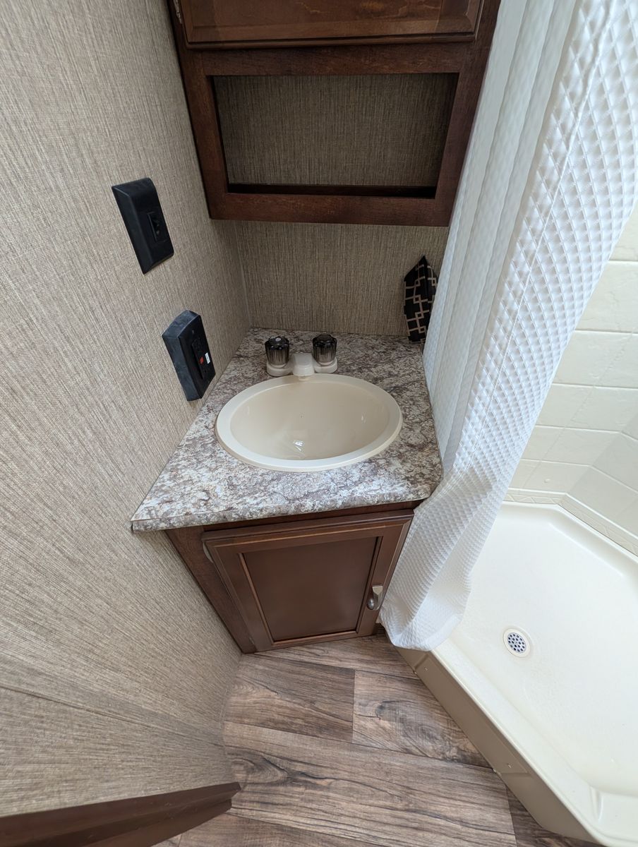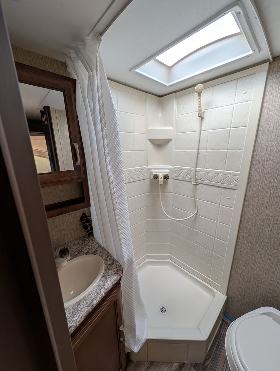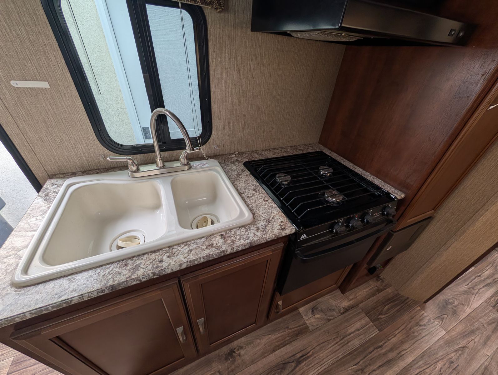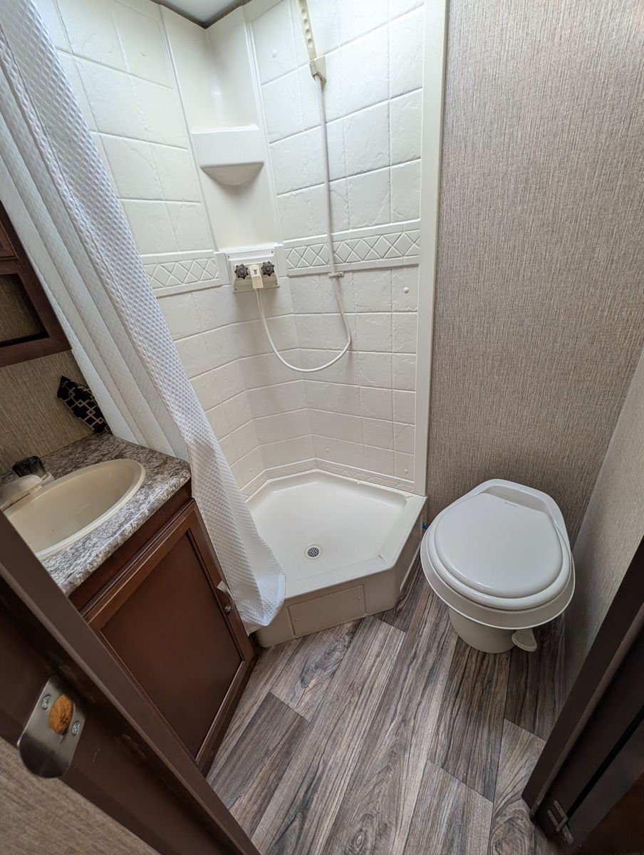 Brand new tires (last week), all pop-out tents in great condition, working freezer, fridge, sinks, oven, microwave, TV, AC, heater, water heater, showers (inside/outside), awning, pop-out.