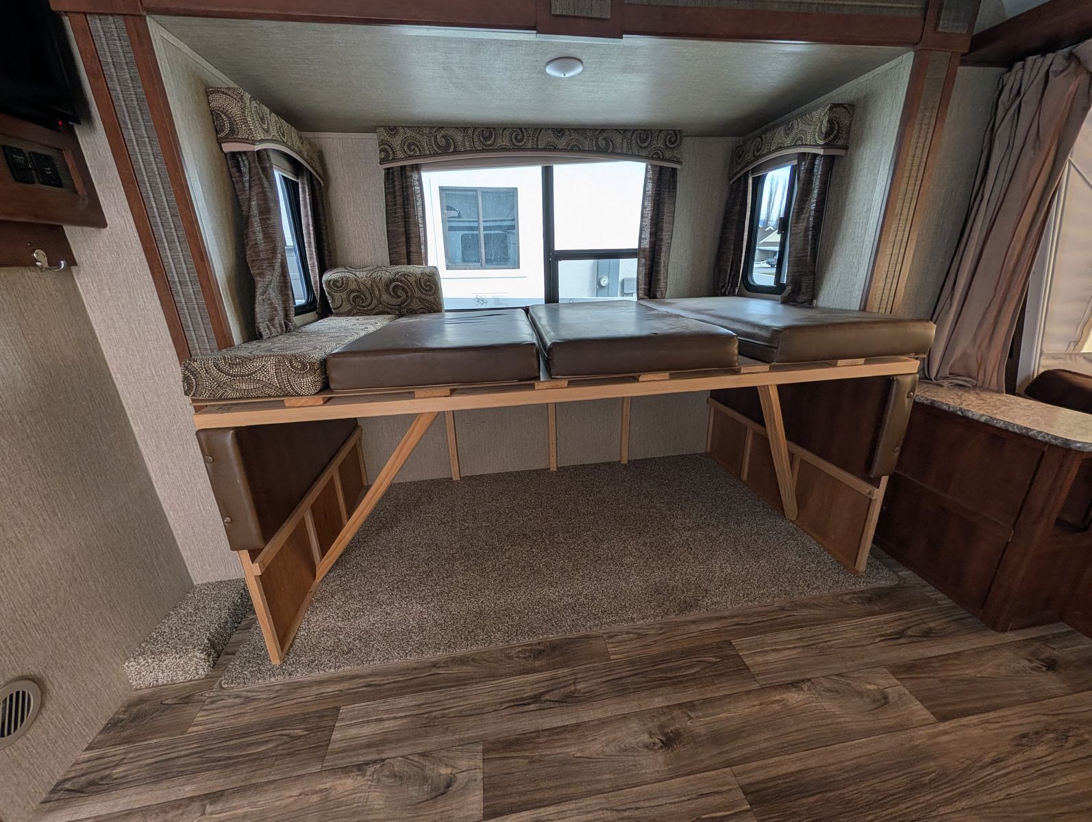 Sleeps 6 adults and 3 smaller ones for a total of 9. We converted the eating space into a bunk bed.